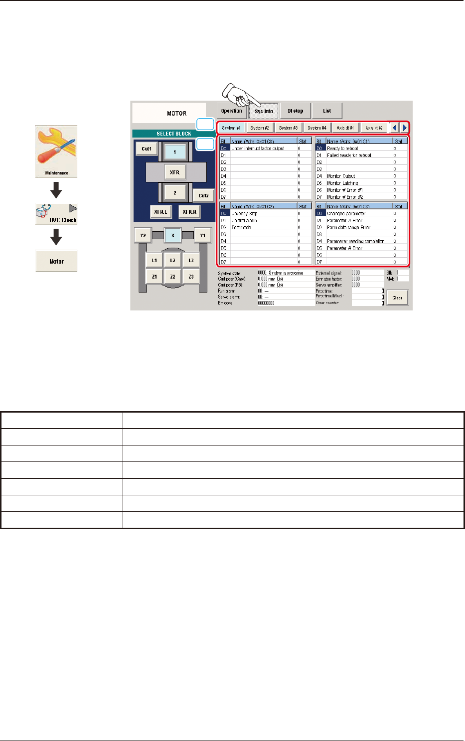 The "Sys Info" windows are provided with the following item. When each