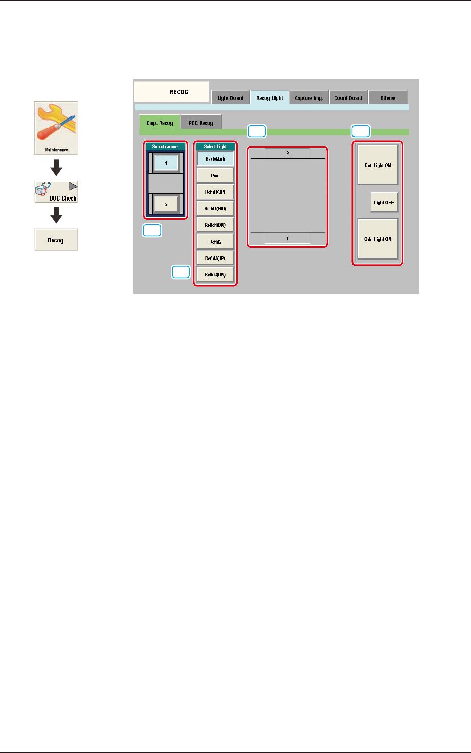 3OM-1751 1-91 6.3.2.1 "Cmp. Recog" T ab Sheet When the [Cmp. Recog] tab sheet is pressed on the [Recog Light] tab, the following tab sheet appears. [1] [2] [3] [4] F3A74 [1] Select camera Buttons Displayed are …