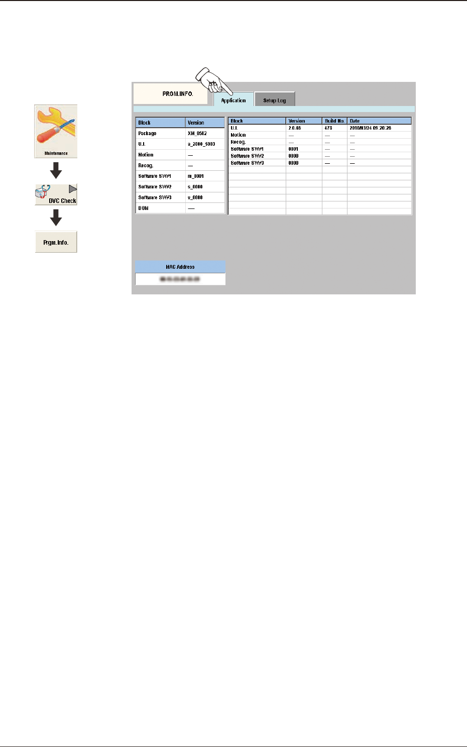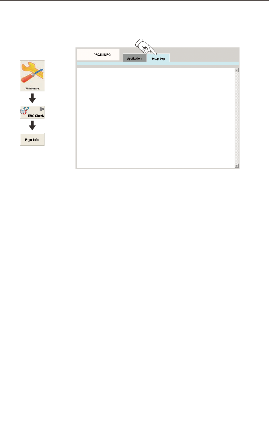 3OM-1751 1-103 1303-001 6.5.2 "Setup Log" T ab Sheet Displayed are the setup logs. F3A84 Detailed Display Displayed are the setup logs of the machine. 6.5 "PRGM.INFO." Window Graphic Development