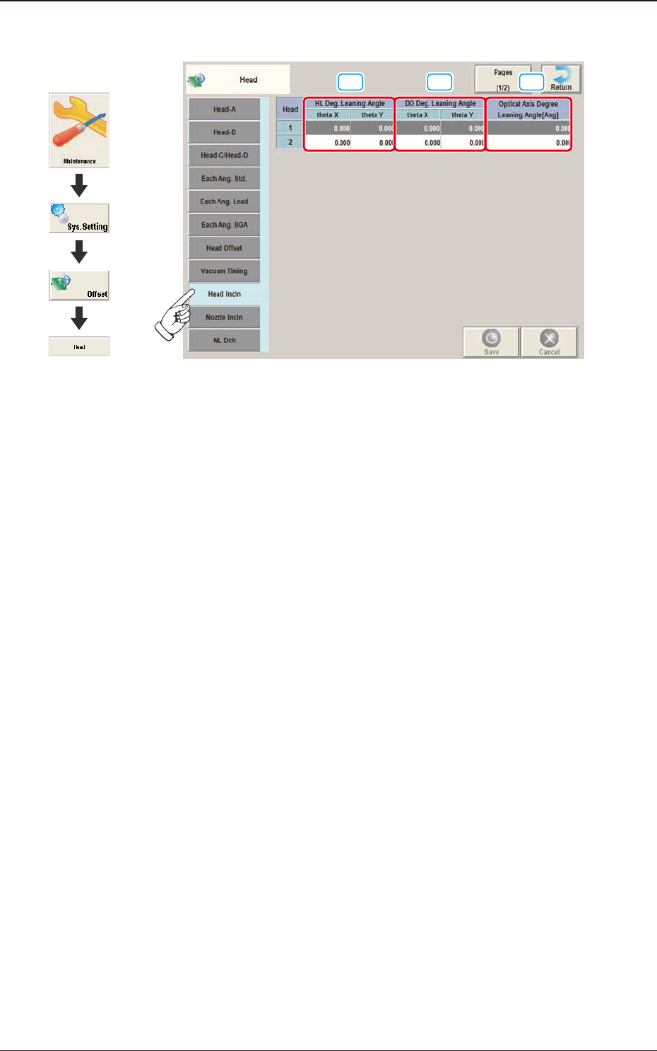 3OM-1751 2-43 1303-001 2.5.9 "Head Incln" T ab Sheet [1] [2] [3] F3B42 [1] HL Deg. Leaning Angle theta X [deg], theta Y [deg] The set parameter is used to correct the deviations in the X and Y direction that wi…