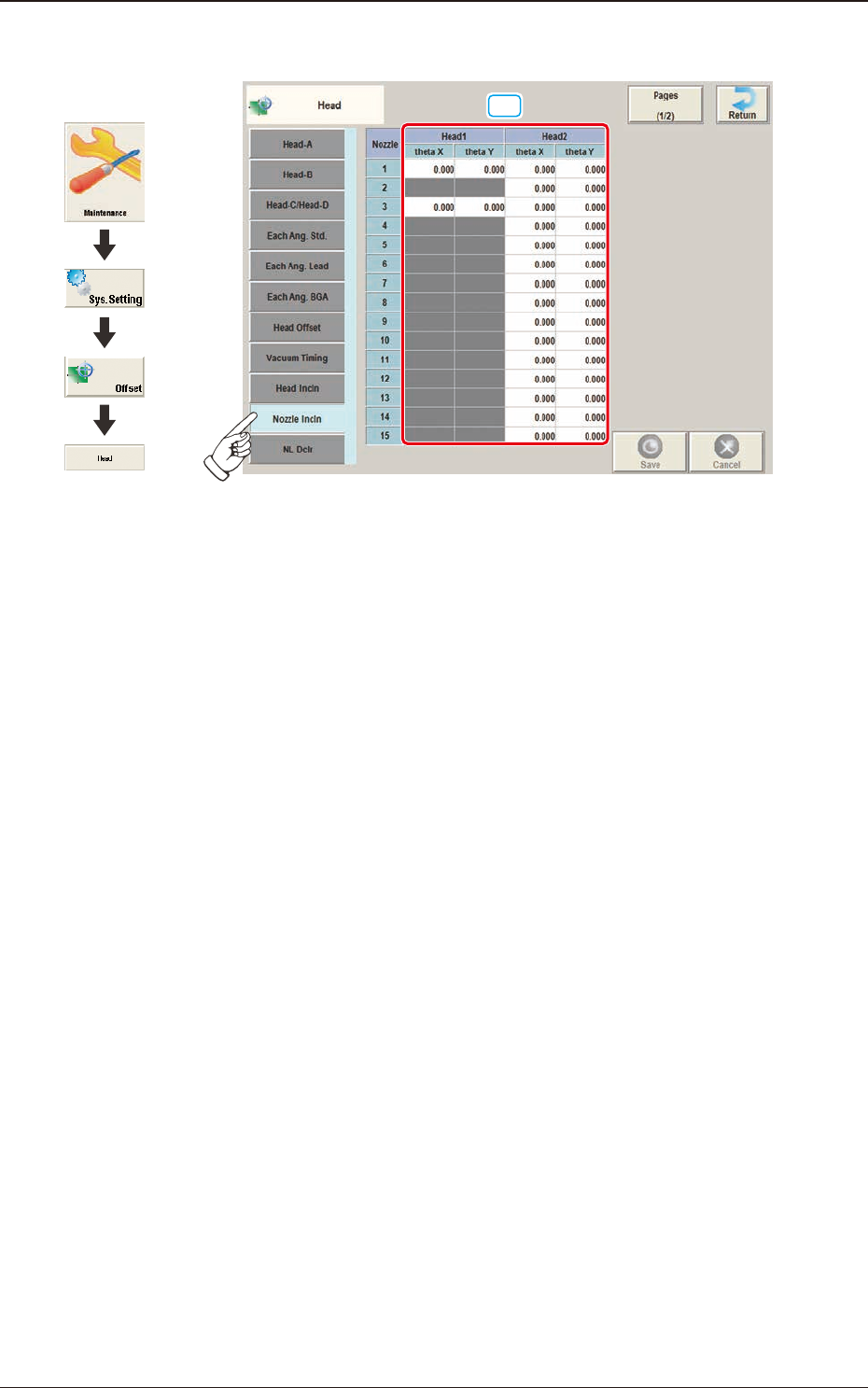 will be caused due to the inclination of the nozzle shaft while the NL-axis is