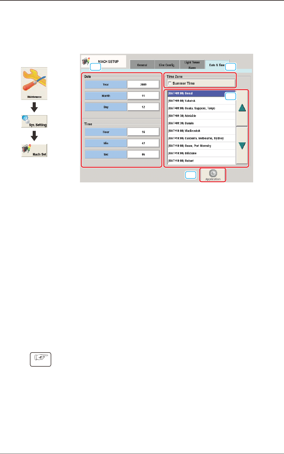3OM-1751 2-93 1303-001 4.4 "Data & T ime" T ab Sheet The system clock (year, month, day, hours, minutes, and seconds) can be adjusted and a time zone can be selected. [1] [2] [3] [4] F3B85 [1] Edit Buttons …