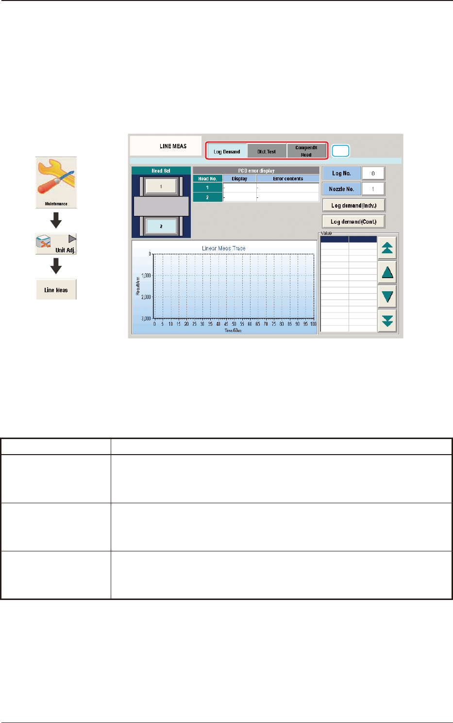 The "LINE MEAS" window is provided with the following three tabs. When