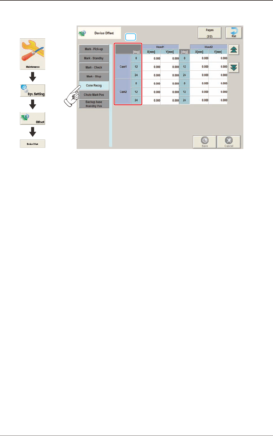 3OM-1751 2-20 1303-001 2.1 "Device Offset" Window 2.1.15 "Chute Mark Pos" T ab Sheet [1] F3B20 Graphic Development