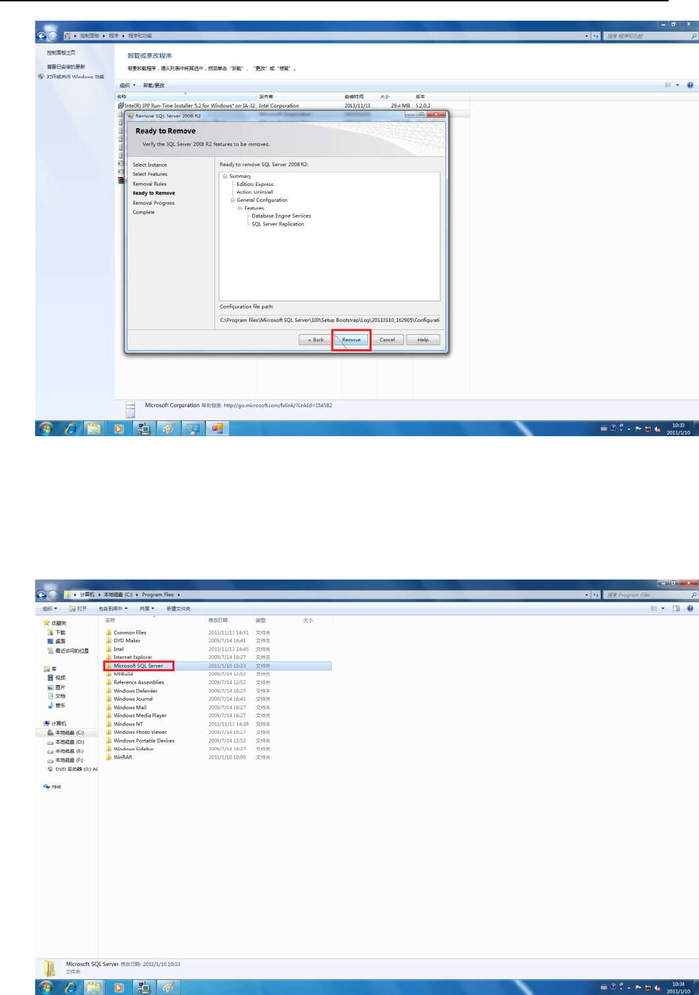 5. 打开我的电脑,将 C:\Program Files 目录下 Microsoft SQL Server 文