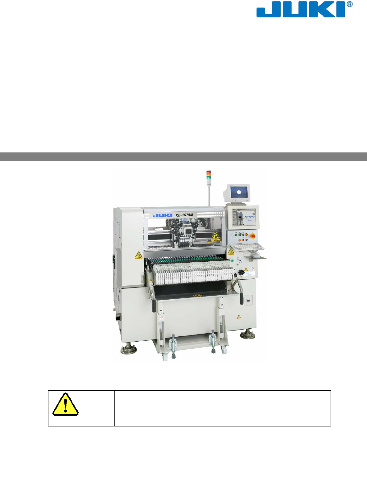KE-1070 / 1080 操作手册Ⅰ (操作员用) 感谢您购买本公司的产品。 注意 为了安全使用 KE-1070/1080 ,请您在使用前务必详读本书,充分理解本书的 内容。 请在详读本书后,将其保管在指定的场所,以备随时阅览。 高速通用贴片机 40074980