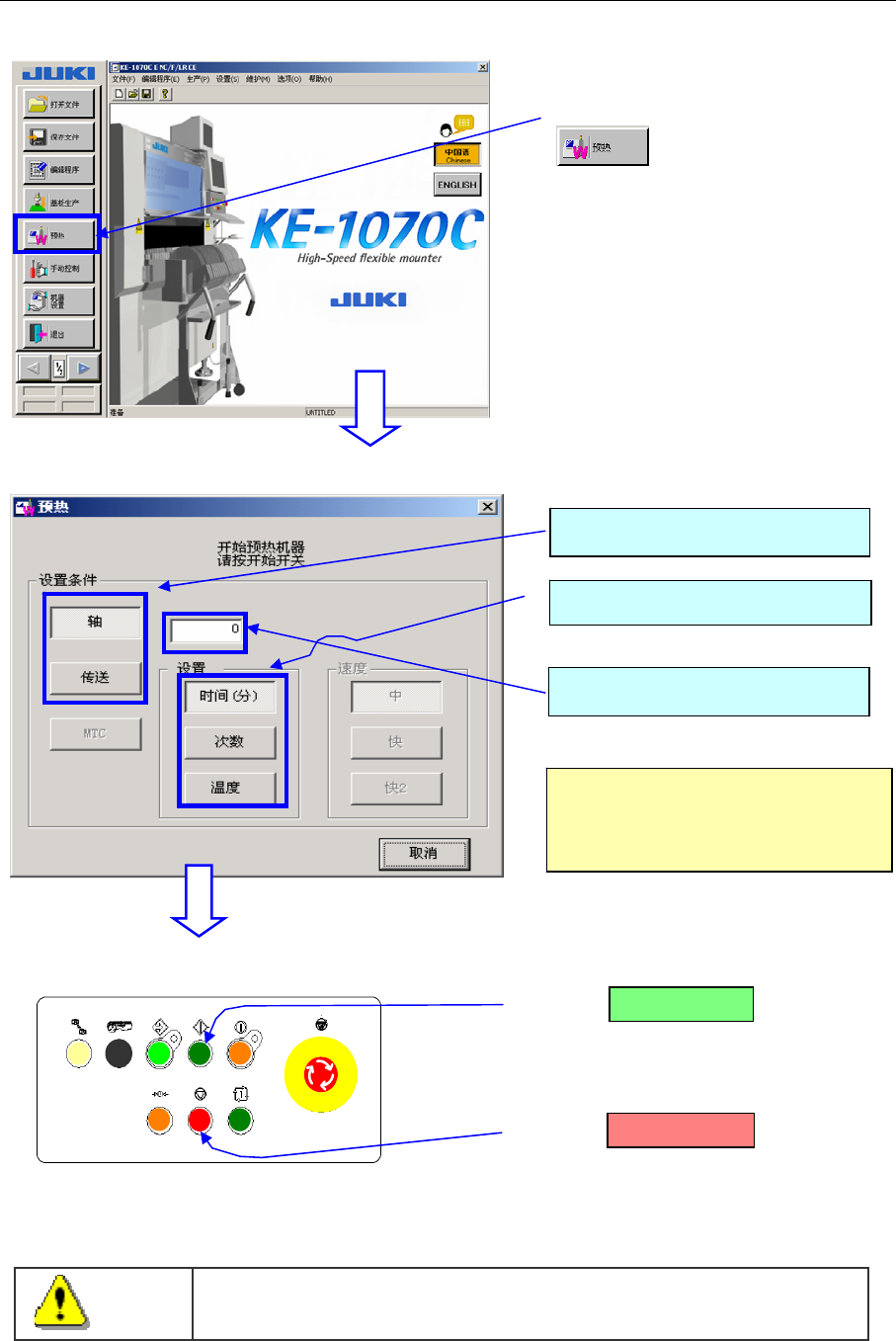 轴 传送起动,开始预热。