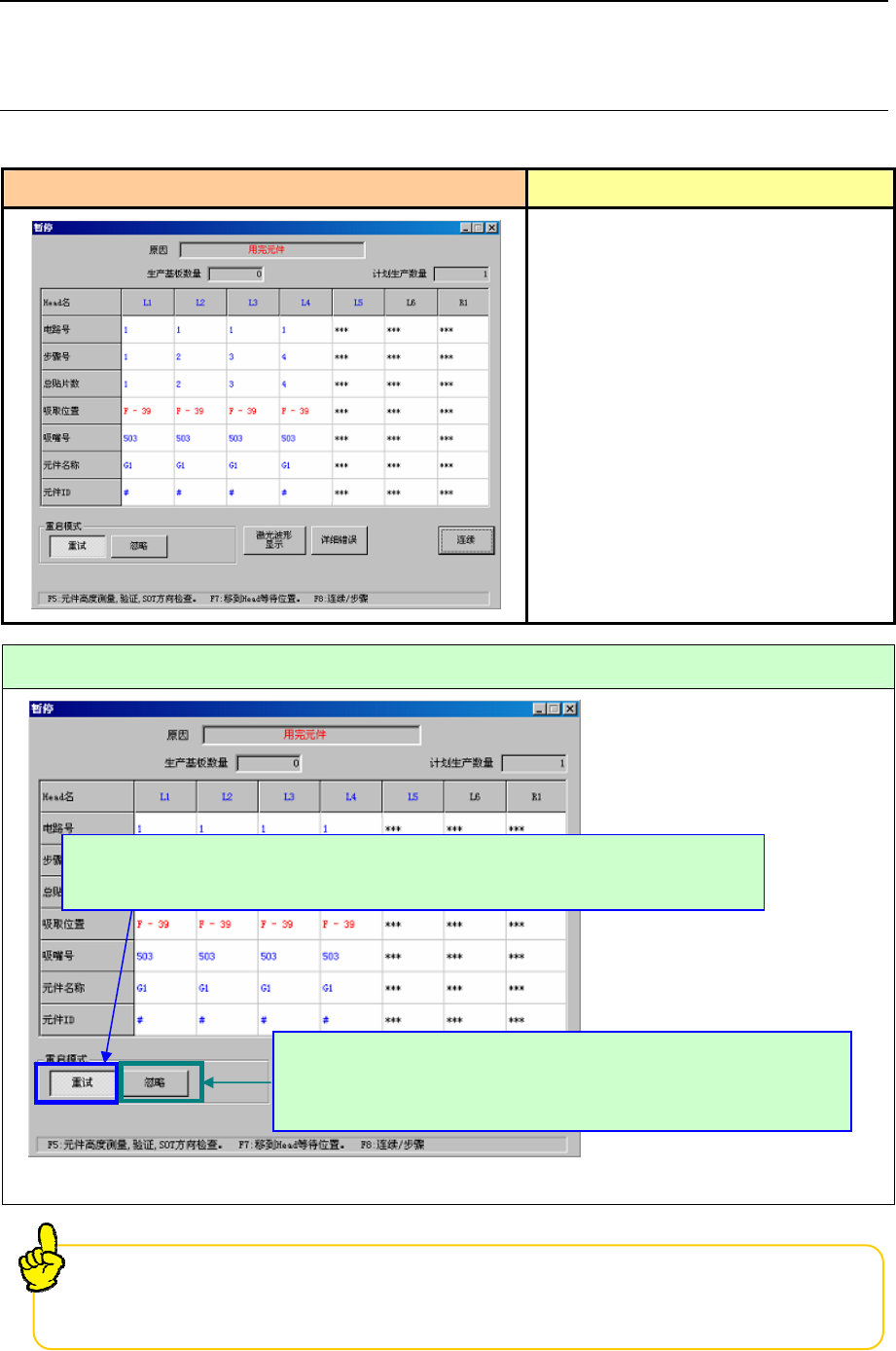 3-1 用完元件 (在操作选项中选中“无元件暂停”时)