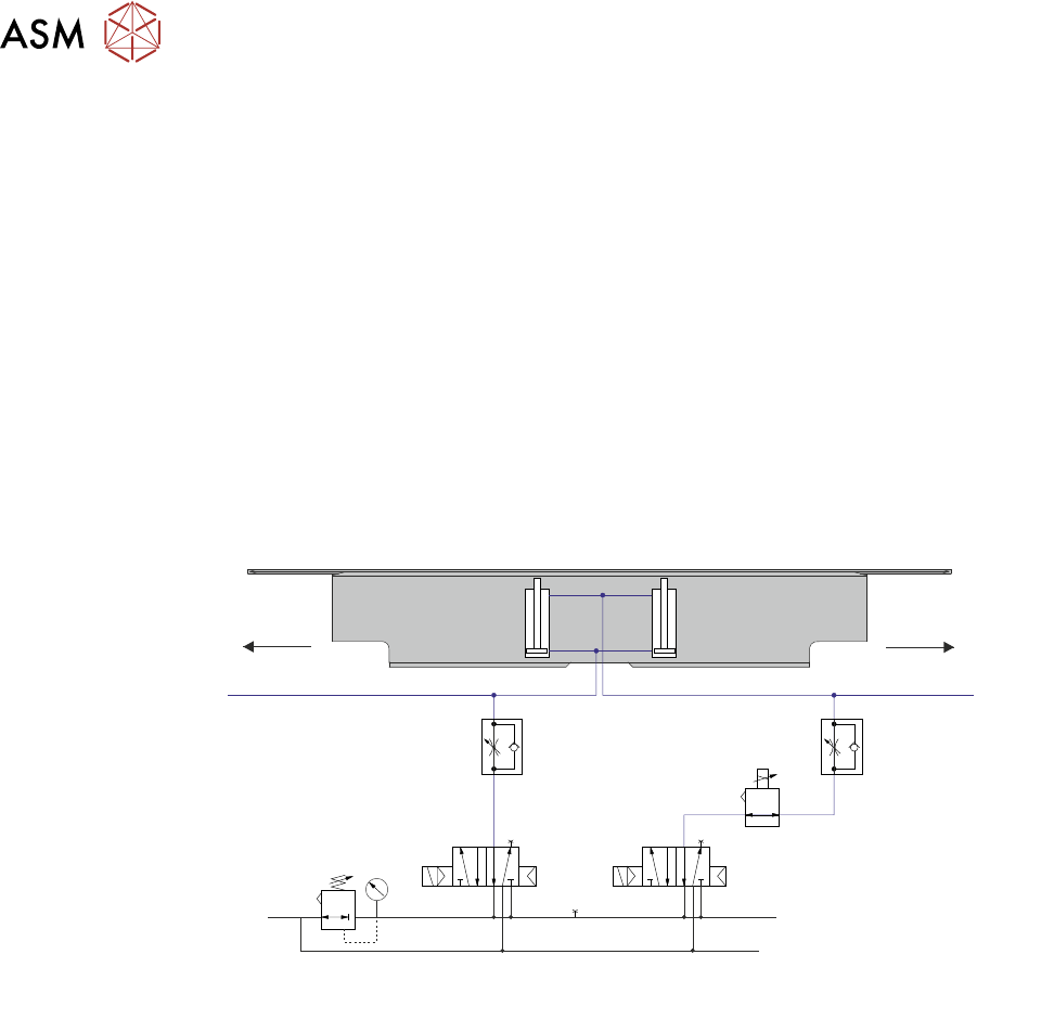 Das Over-Top Plattenventil (3) steuert ein Paar doppelwirkender Führungsschlitten, welche veran-