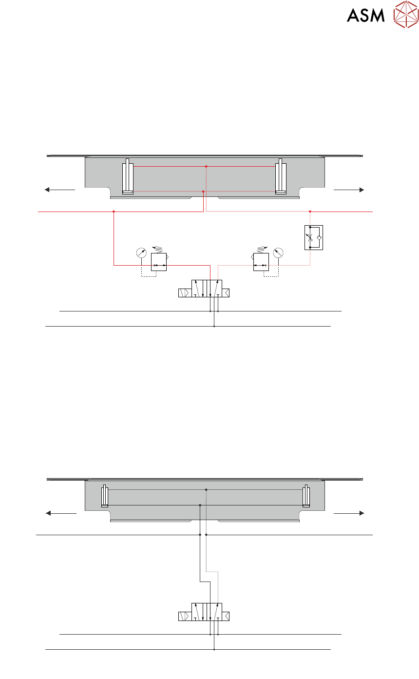 Luftleitungen zu und von dem oberen Klemmenzylinder sind rotgefärbt.