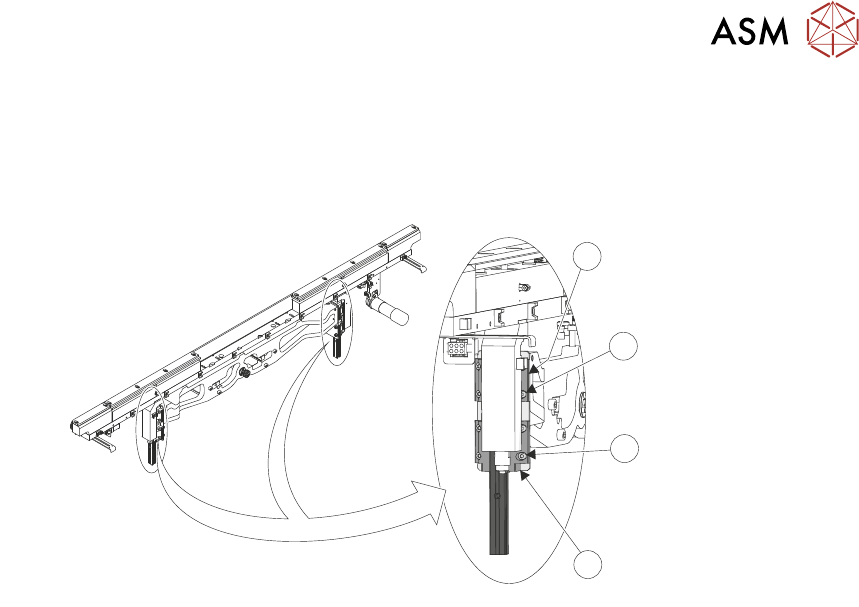 2 UNIVERSALKLEMMEN (APC) 2.6 JUSTIERUNGEN UND EINSTELLUNGEN EIGENSTÄNDIGES HANDBUCH UNIVERSALKLEMMEN (APC) 12/2019 37 25. Mit Hilfe eines 3 mm Innensechskantschlüssels lösen Sie die vier Halteschrauben (2), reichen Sie s…
