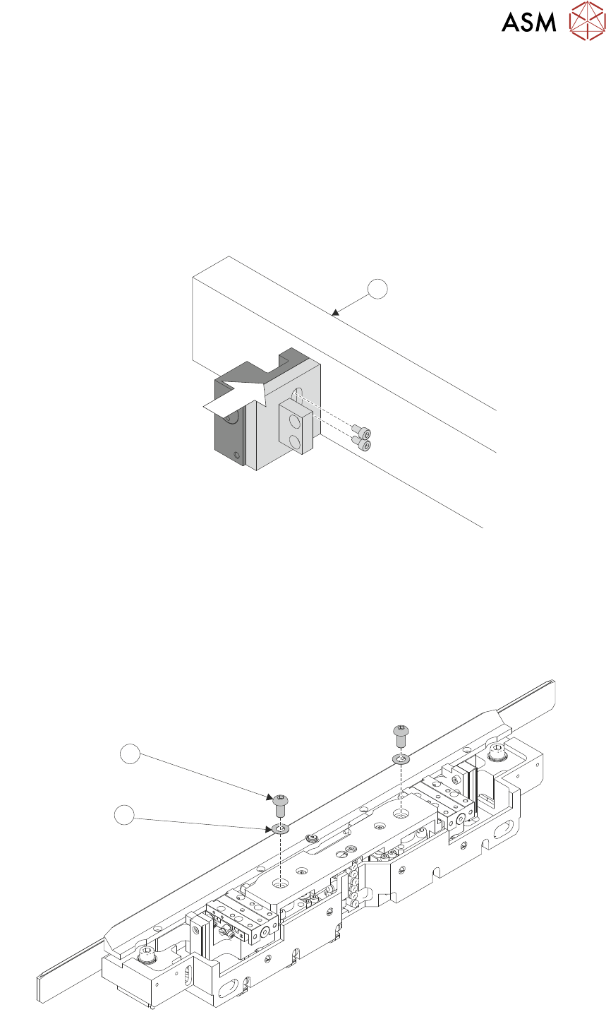 darauf, dass die Baugruppe nach unten geschoben werden kann und die Linearschiene (1)