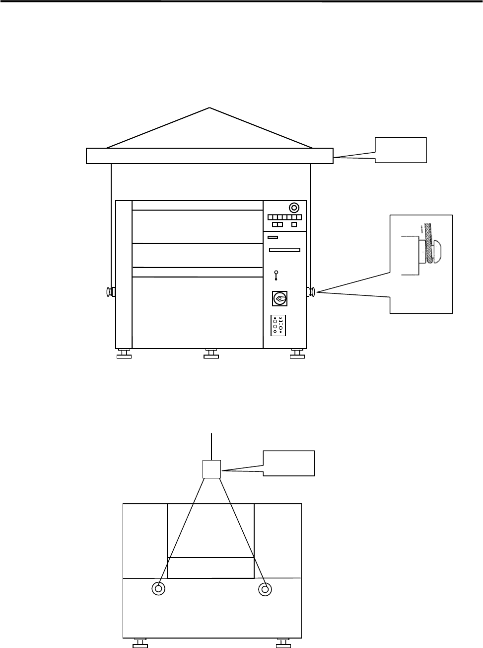 1 Installation 1-3 How to Hoist the Machine Be sure to use the bo lts when hoisting th e machine. ■ Recommended Bolt Size ● Type 1 (M30 x P3.5) ● Type 2 (M30 x P3.5) Type M × P D d d1 L L2 L3 S T R H B C 1 30 × 3.5 36 68…