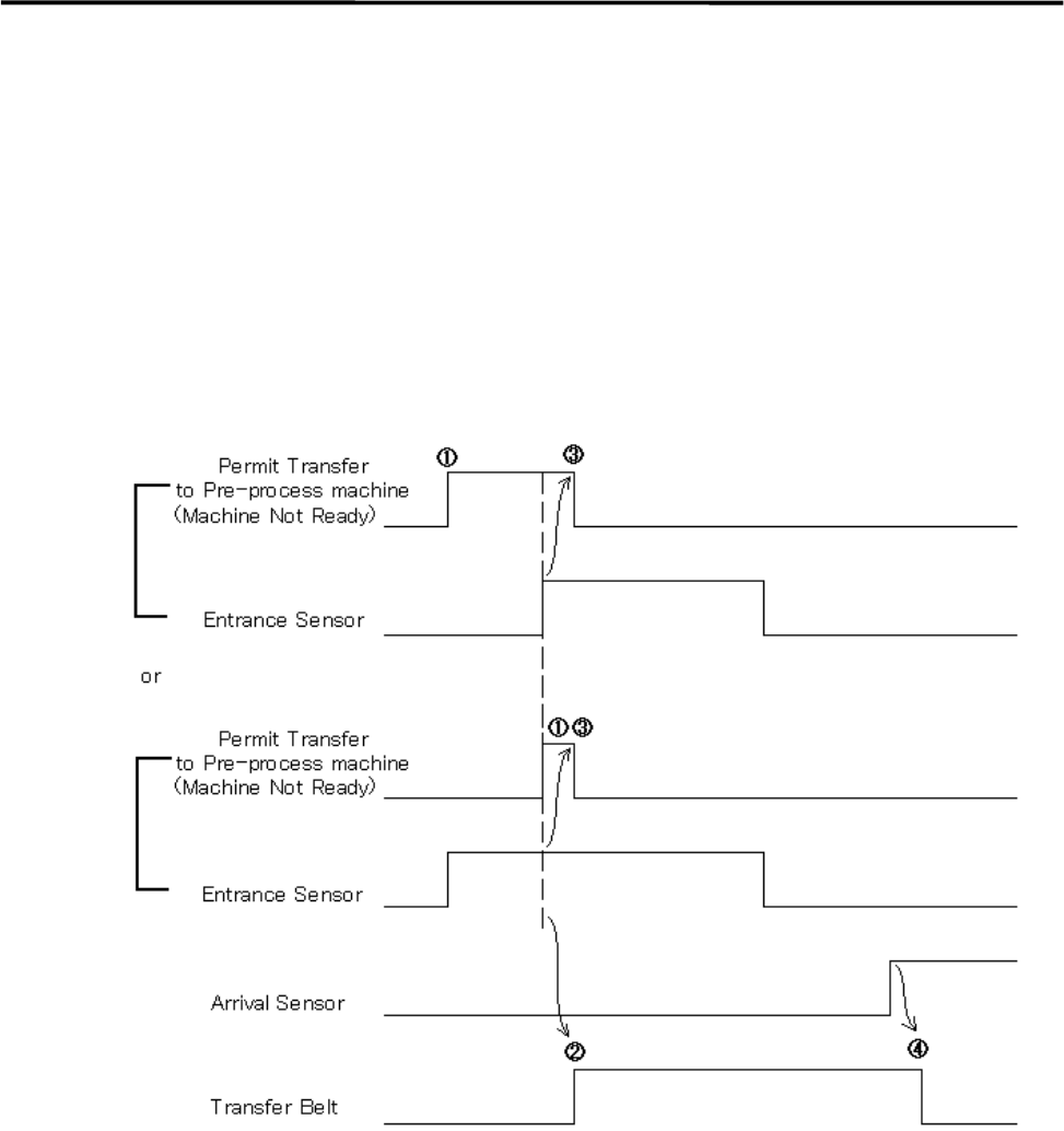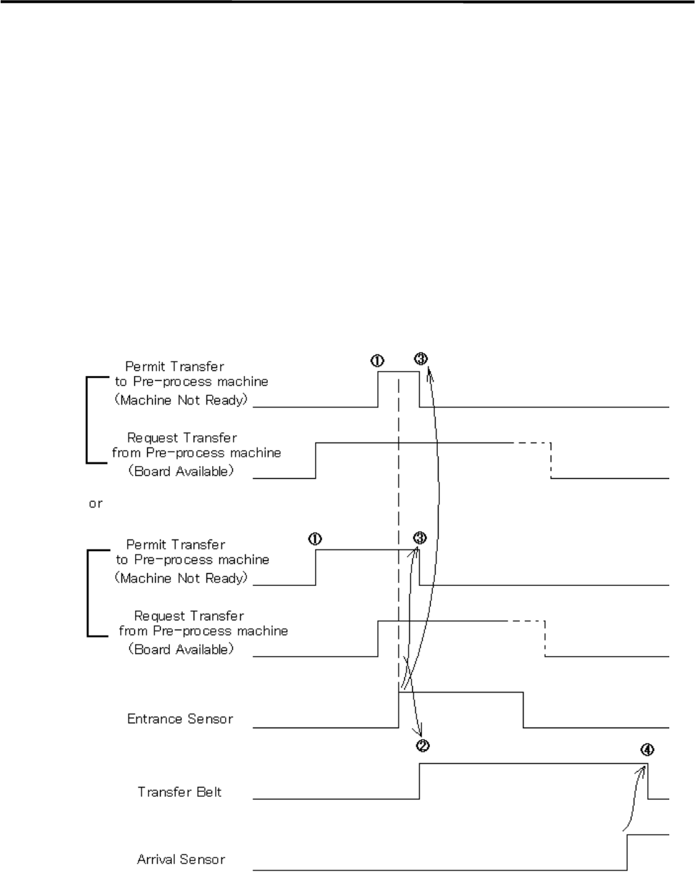 ① When the machine is ready to receive PC board, Permit Transfer (Machine Not Ready) is sent to