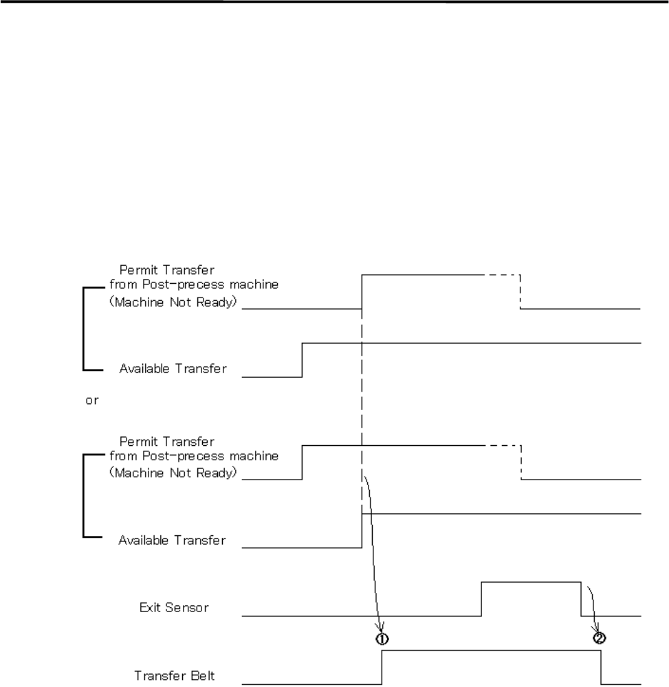 1 Installation 1-14 Sequence of Sending PC board (Standard sepc.) ① The transfer belt will be activated wh en the machin e is ready to send PC bo ard and the Permit Transfer (Machine Not Ready) is receive d from Post-pro…
