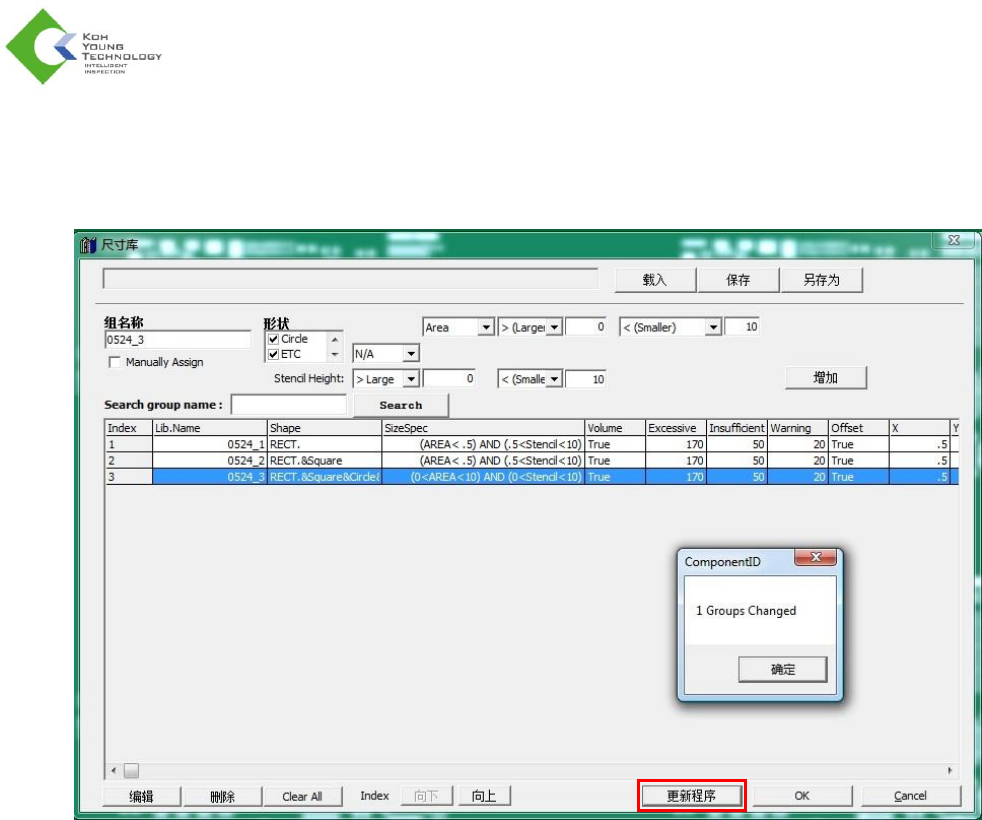 下“Change Part Library Condition”(更改部件库条件)窗口。在此窗口中,用户可按组更改检测条件。