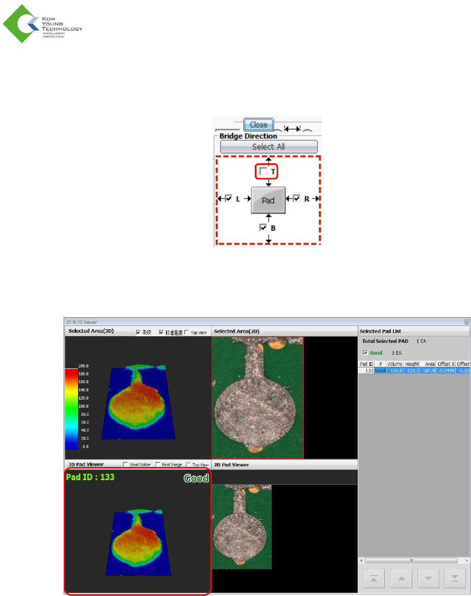 4. 验证焊盘(编号:133)的检测结果。即使焊盘顶部发生连桥,也会被视作“良好”的焊盘。
