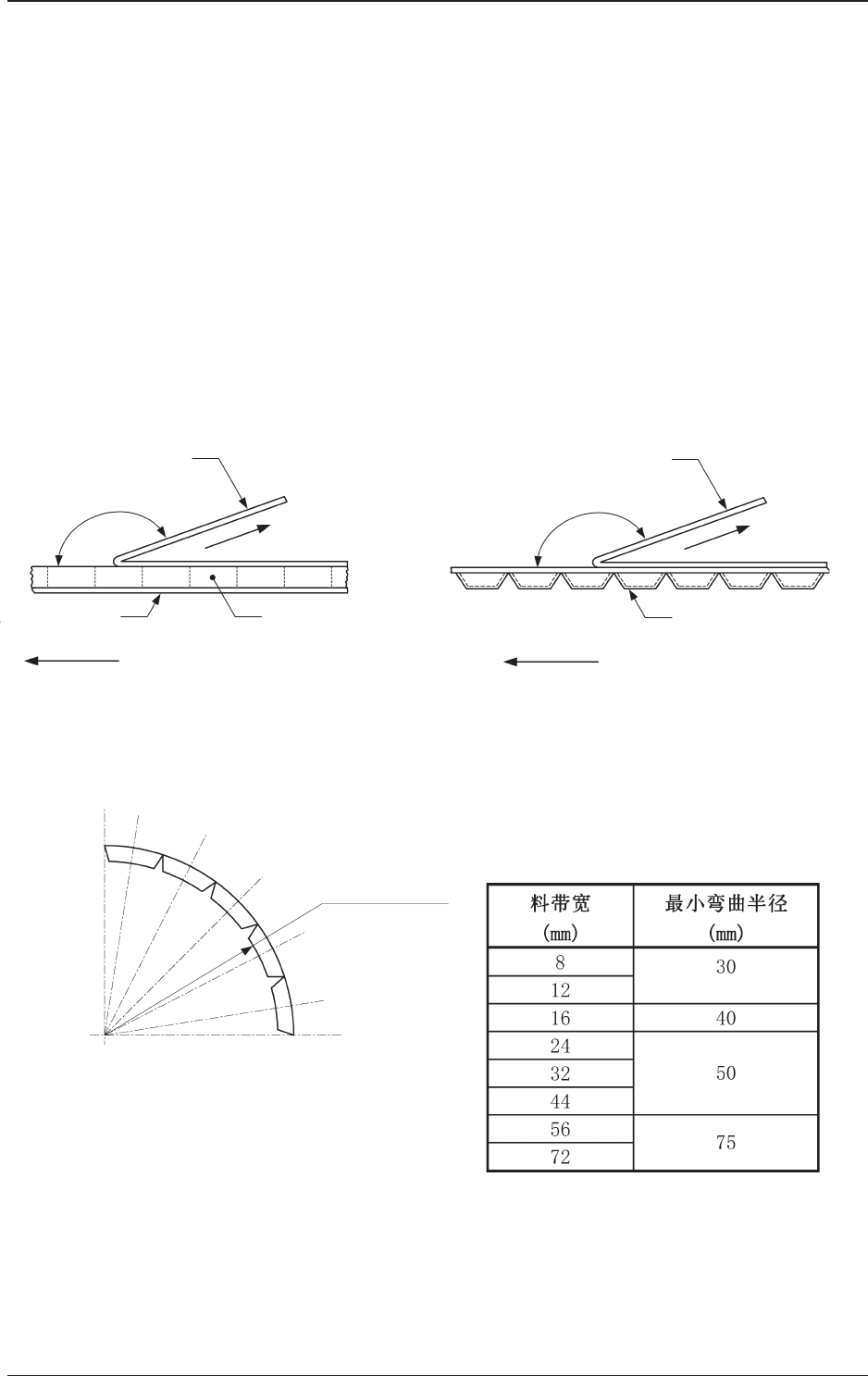 当料带弯曲到最小弯曲半径时,不损伤料带,元件仍被保持在料