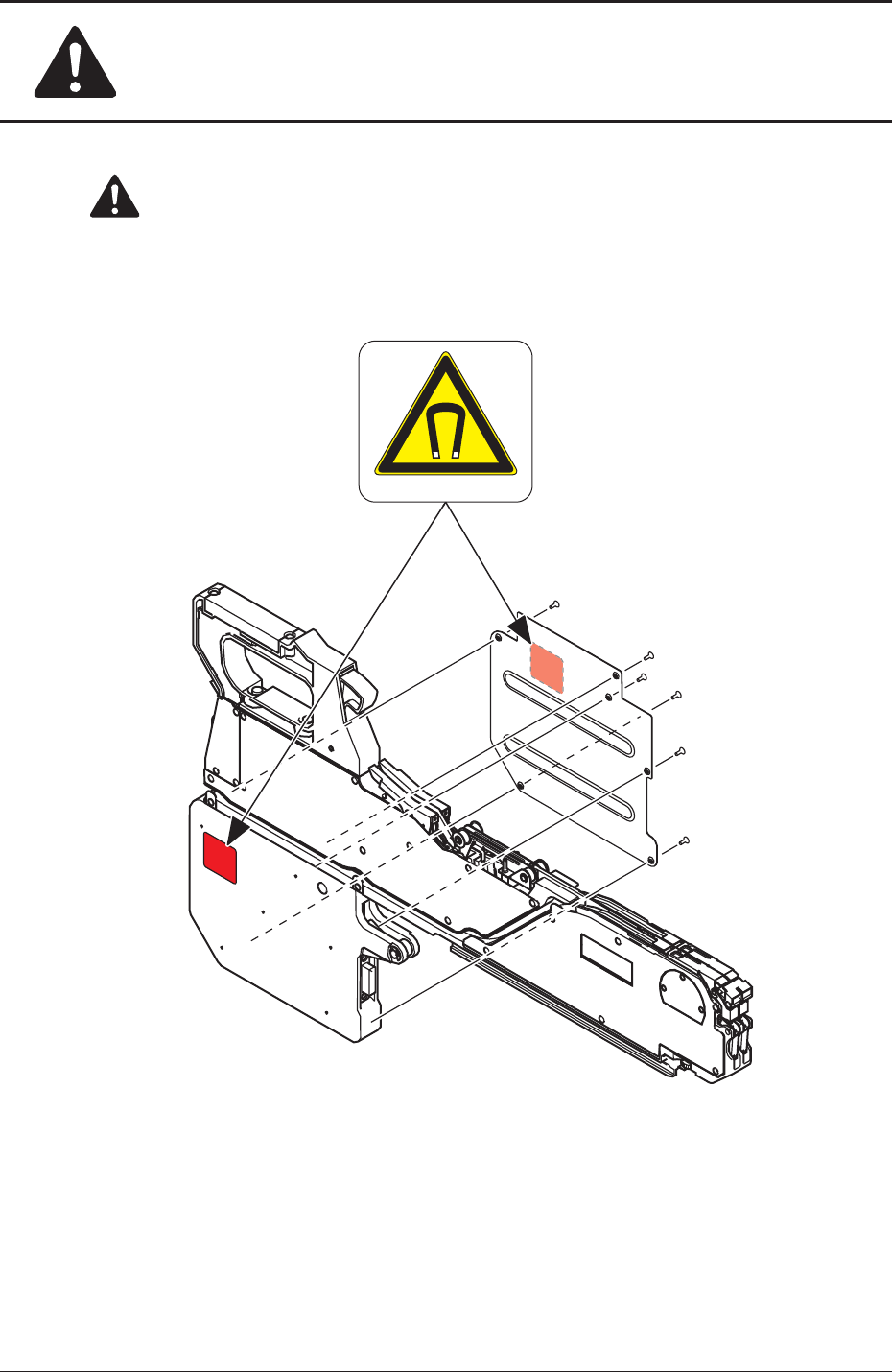 心脏起搏器安装者请不要在带式送料器内操作。心脏起搏器安装者请不要在带式送料器内操作。