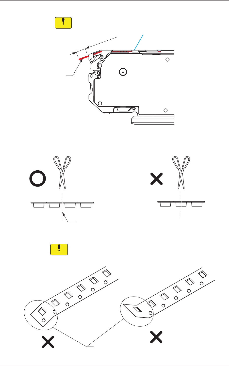 另外,宽幅偏大的压纹带时,请避开压纹部进行剪切。