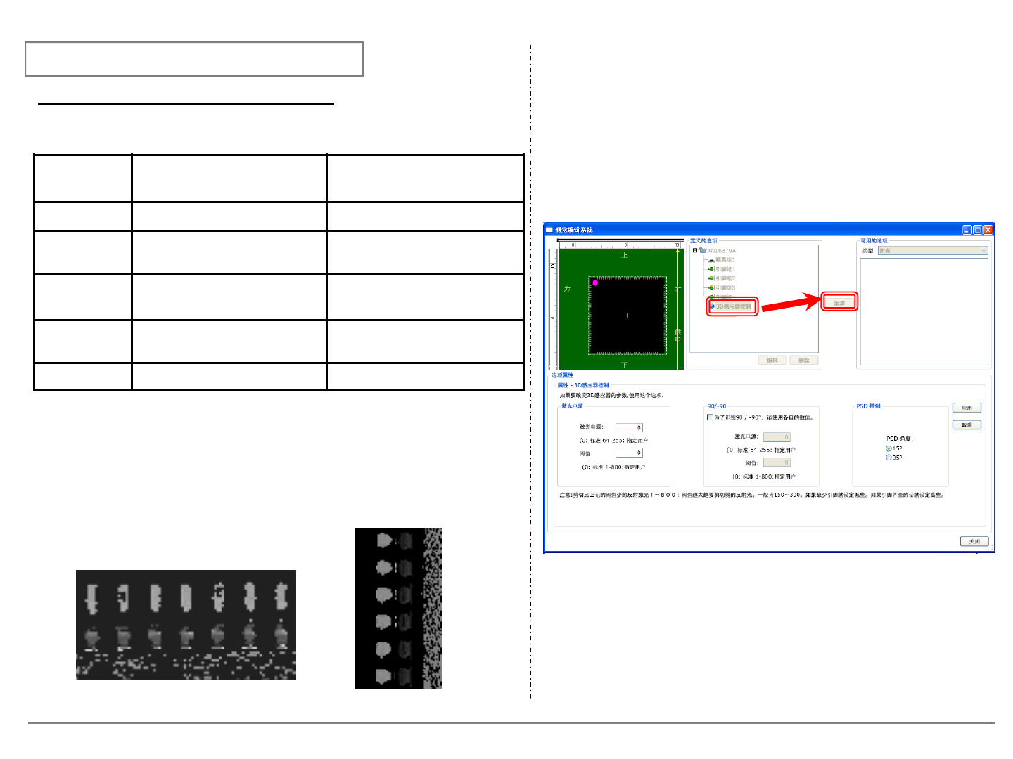 Page 30 4 - 7. 3D 传感器固有 的识别错误 : QFP , SOP <关于机器中的 「 3D 传感器控制」 的调 整方法> 从机器示教画面, 按激光能量 ⇒ 光量下限值的顺序设定。 在 3D 传感器的内部构造上,元件的 0 度和 180 度的图像很相似 , 但 90 等和 270 度的图像与 0 度的图像有时是相异的, 此时,可使用 90 度和 270 度的设定值。 ・ 激光能量 通常,使用默认值 192 。 但是,在左…