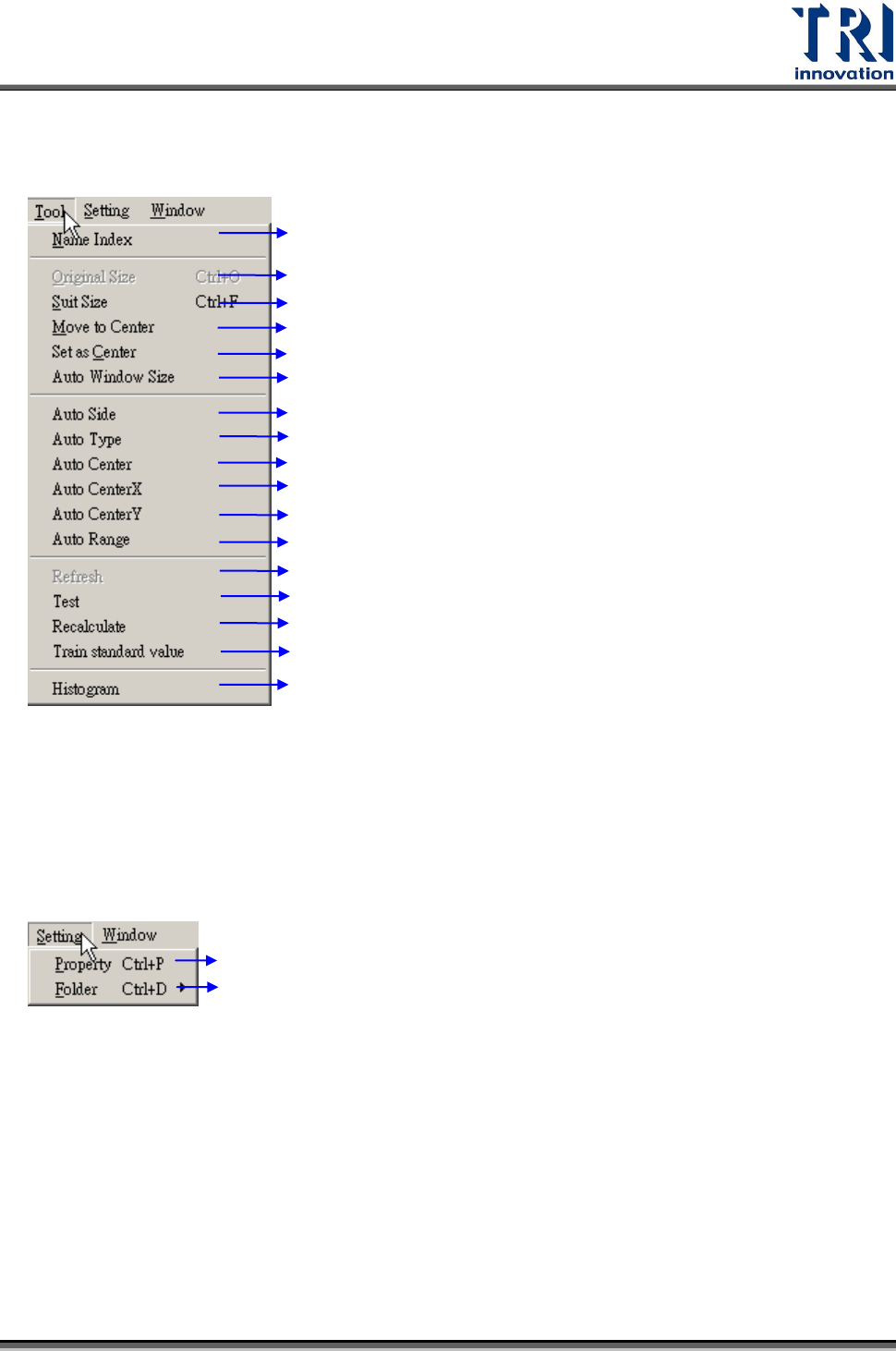 Test Research Inc. 130 TR 7007 SII User Guid e – Softwar e 5.6.8 滑鼠右鍵功能表 1) Zoom In –放大影像。 2) Zoom Out –縮小影像。 3) 2D/3D Image – 2D 或 3D 影像顯示切換。 4) Auto Side –自動設定 Pin 腳的 Side 。 5) Auto Type –自動設定 P in 腳的 T ype 。 6) Auto C…