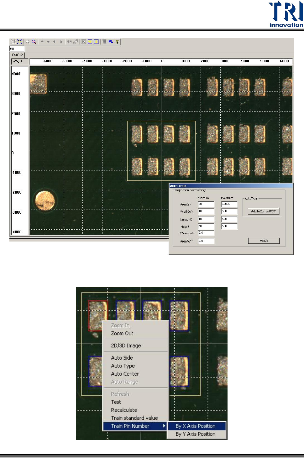 Test Research Inc. TR 7007 SII Us er Guide – Sof tware 131 Step2. 點選其中一個檢測框,按下滑鼠右鍵後選擇 [Train Pin Number] 。