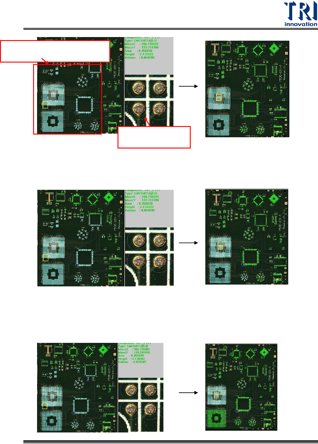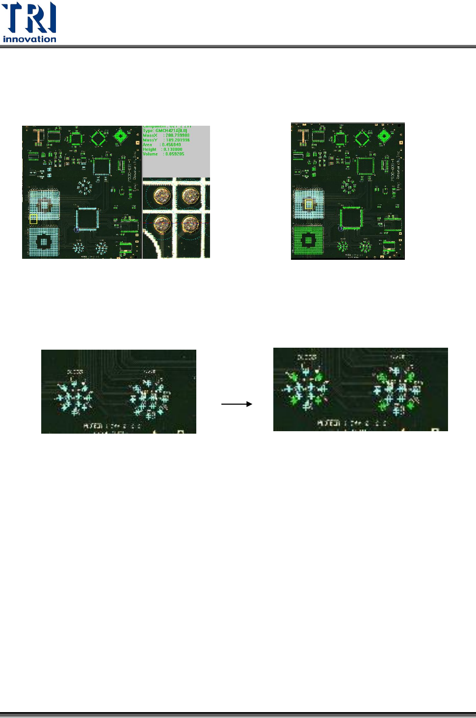 Test Research Inc. 160 TR 7007 SII User Guid e – Softwar e [ 相同種類 ] : 依你所點選的檢測框將與其相同類型元件的檢測框篩選出來。 (Reference 欄位為你所點選的元件類型 ) [By Angle] : 依你所點選的檢測框將具有相同角度的檢測框篩選出來。 (Reference 欄 位為你所點選的檢測框角度 ) 篩選前 篩選後 篩選前 篩選後