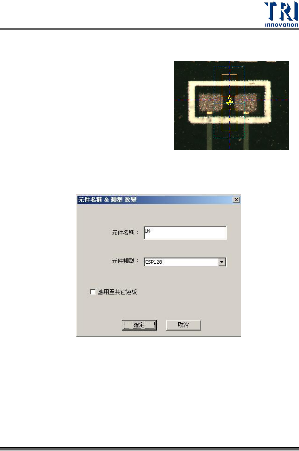 改變元件名稱–可在此對話框設定該檢測框所屬元件名稱以及類型,勾選[Apply