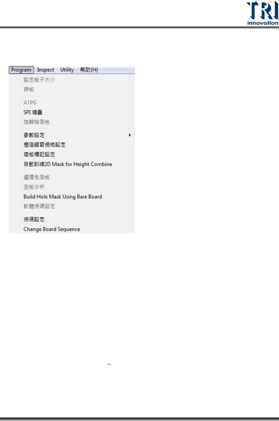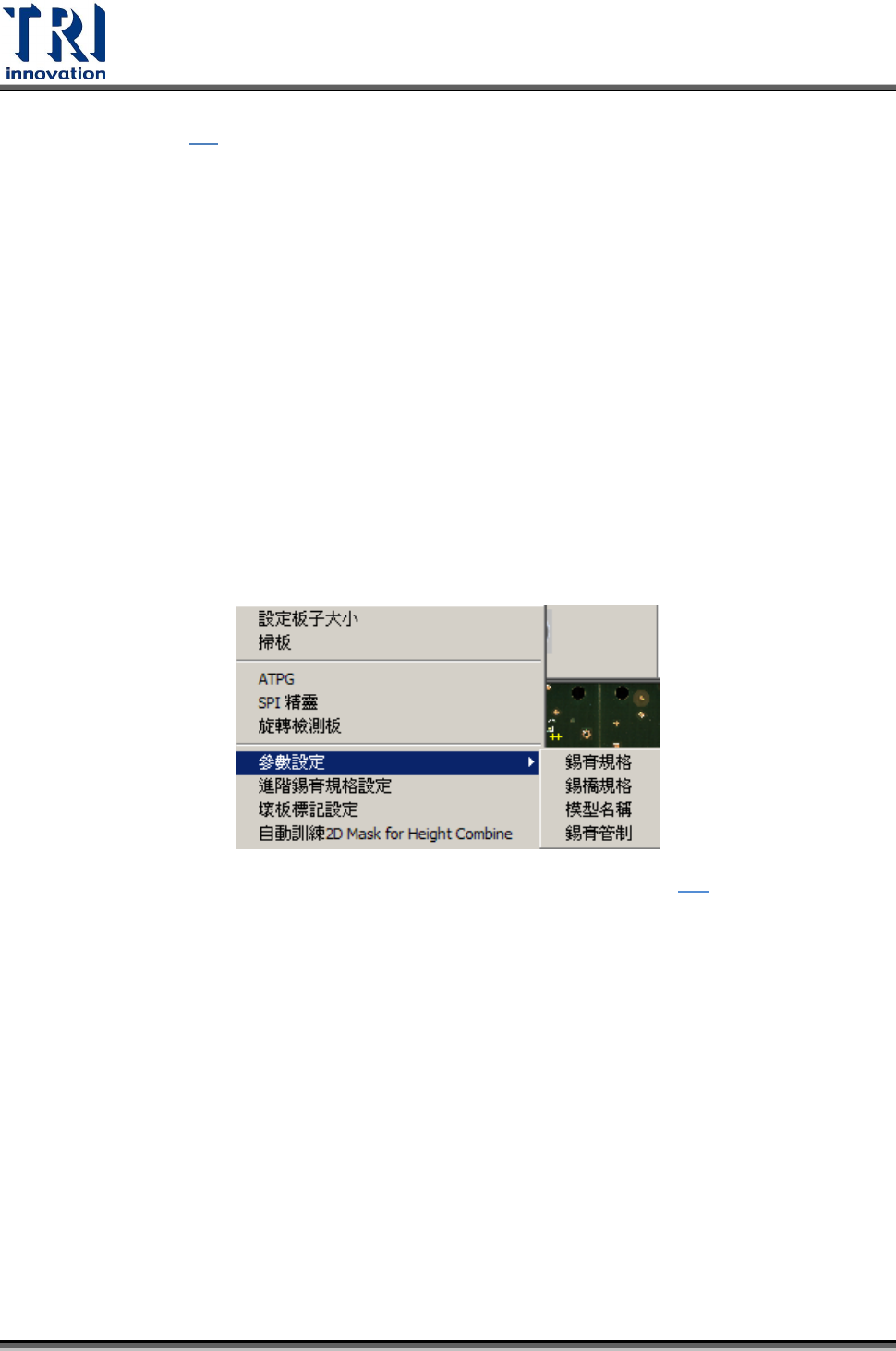Test Research Inc. 194 TR 7007 SII User Guid e – Softwar e 操作方式請參考 3.4 。 7.4.5 旋轉檢測板 本功能可將已經製作完成的程式旋轉,以配合不同的進板方向。 Step1. 開啟一個程式,按下 [ 檢測 / 搜尋對位標記 / 在面板中搜尋 ] 搜尋其對位標記。 Step2. 按下本按鈕,並選擇欲旋轉的角度。 Step3. 重新 [ 設定板子大小 ] 後掃圖。 Step4…