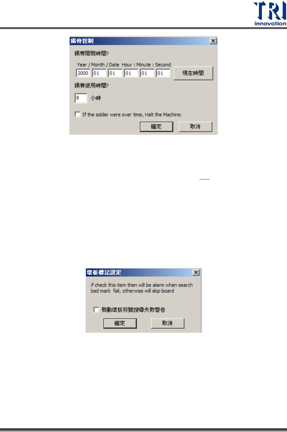 錫膏規格–點選後,[錫膏參數設定]視窗會跳出,詳細參數設定參考 4.1。