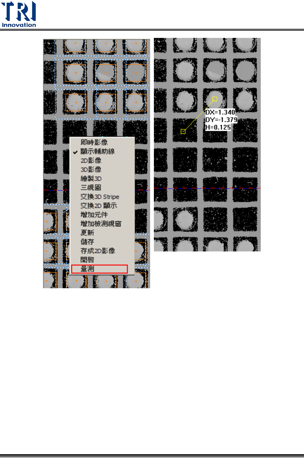 FOV 高度量測尺寸–本功能是配合[量測]功能(位於 3D 的 FOV 影像下對檢測框以外的