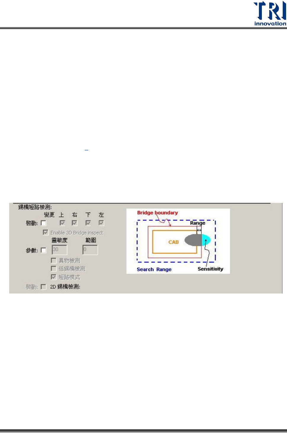 靈敏度–表示短路寬度的參數,以像素為單位。表示若有找到跟本體錫膏相連的錫,且