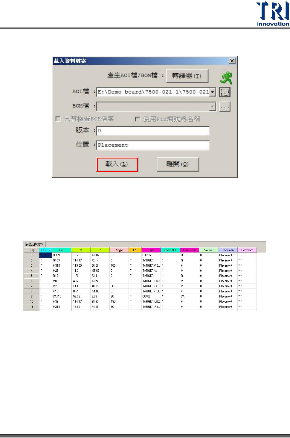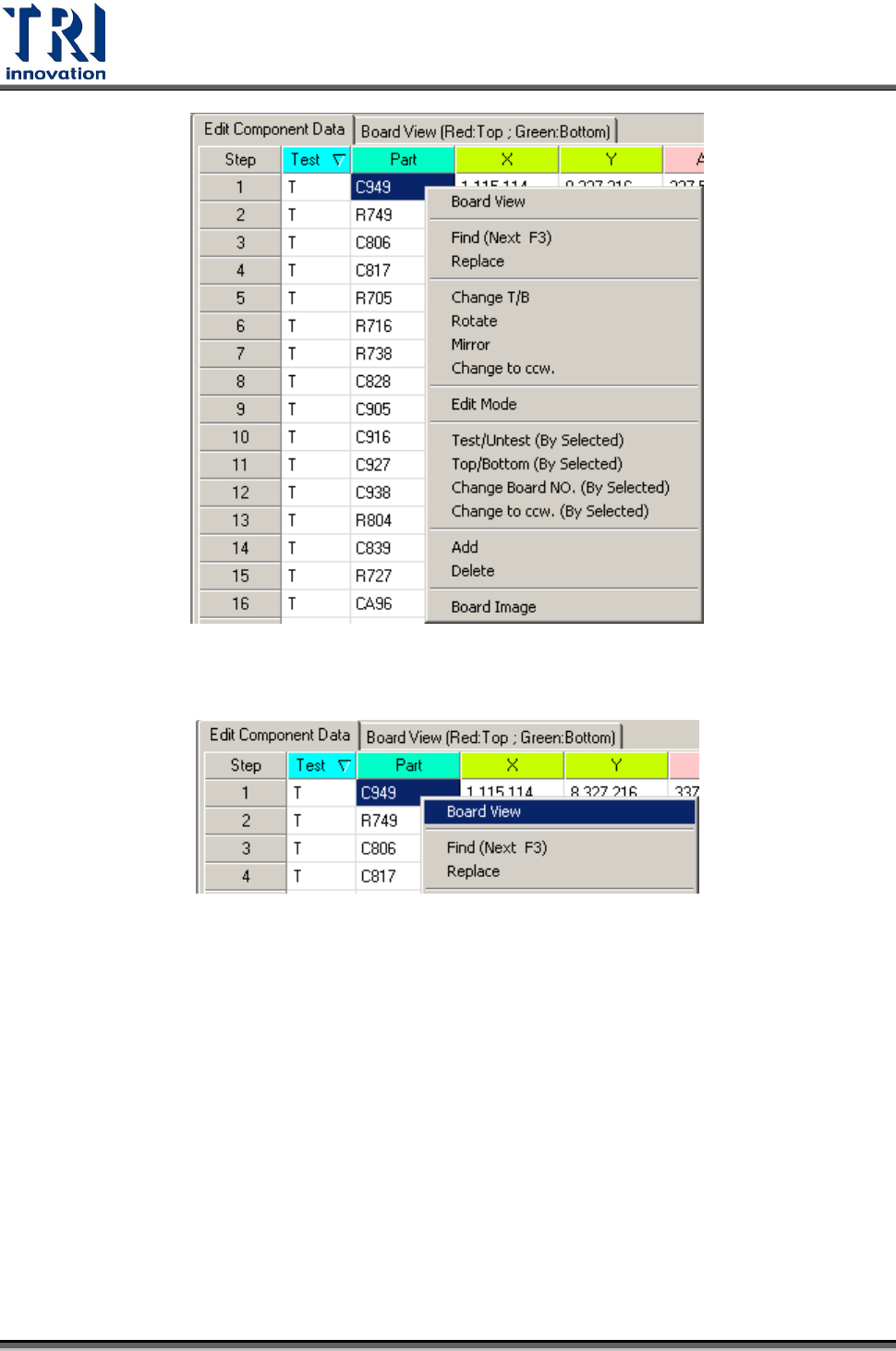 Test Research Inc. 50 TR 7007 SII User Guid e – Softwar e 3. 按下 [ Board View ] 來協助確認元件資料是否正確