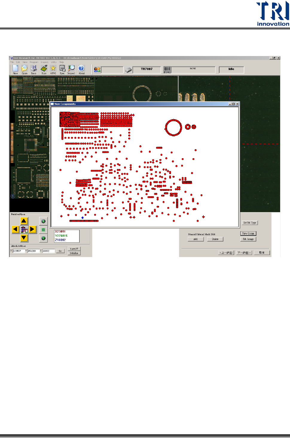 Test Research Inc. TR 7007 SII Us er Guide – Sof tware 79 Step8. 可按下 [ View Comp .] ,參考元件在 CAD 檔上的位置。