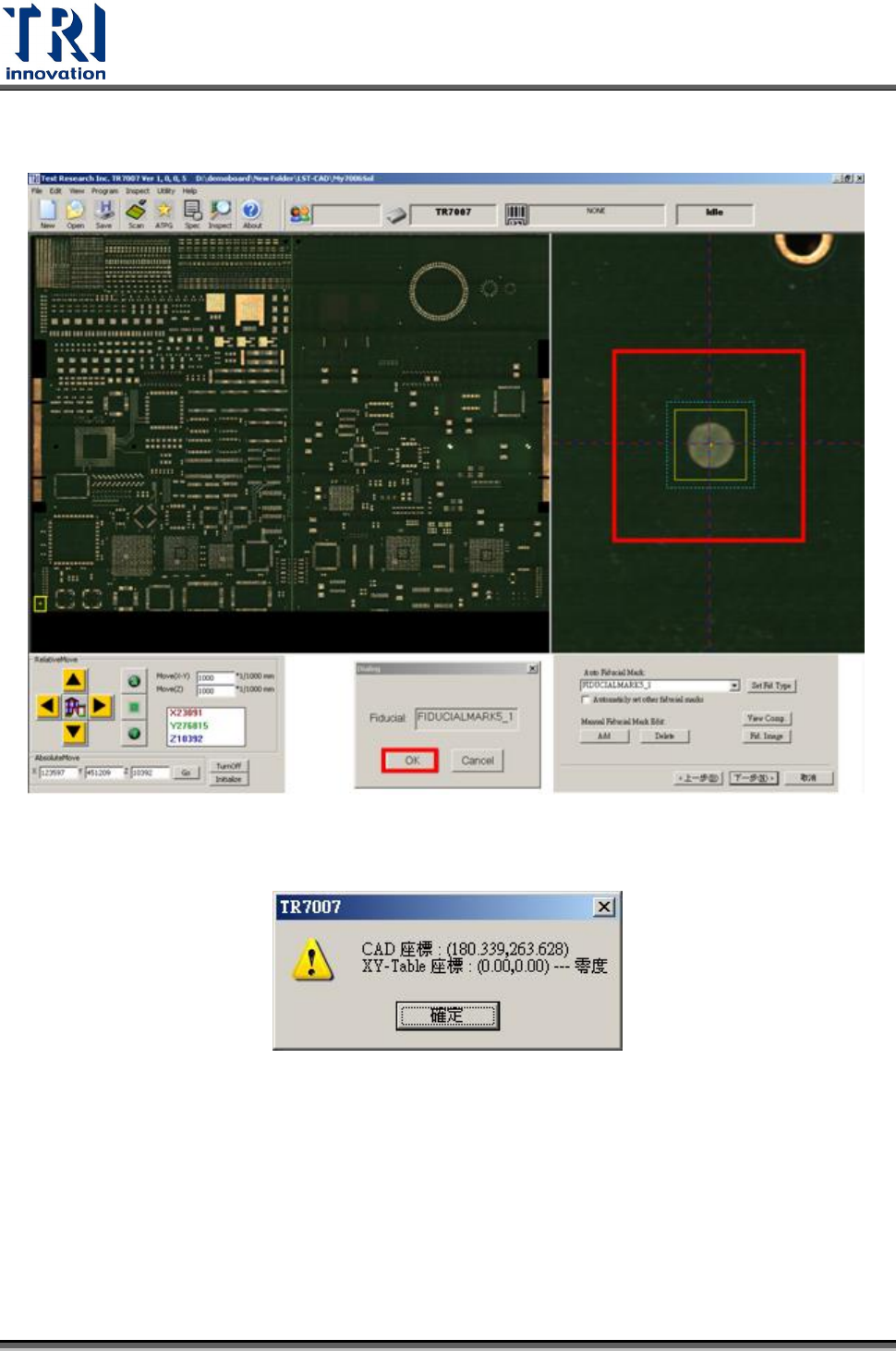 Step9. 在 FOV 視窗調整好檢測框對準選定的點,接著按下[OK]。