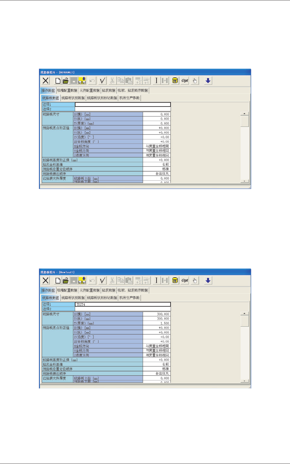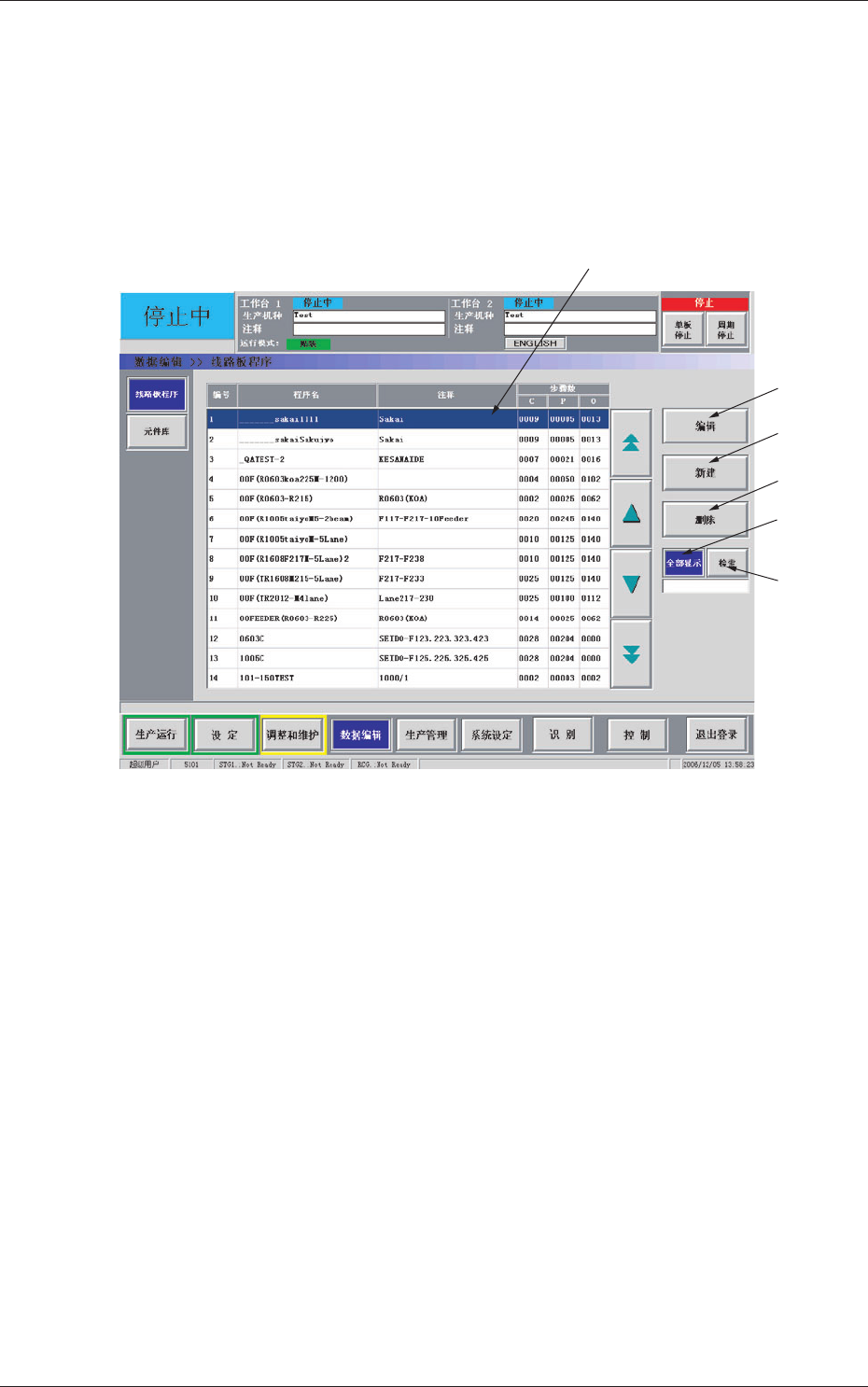 显示选中机种 ( 线路板程序 ) 的编辑界面。