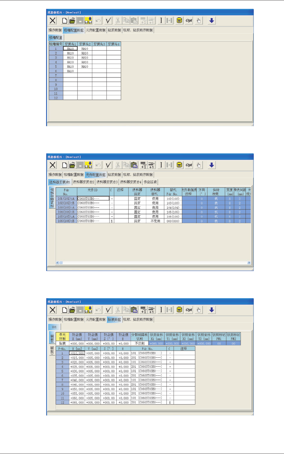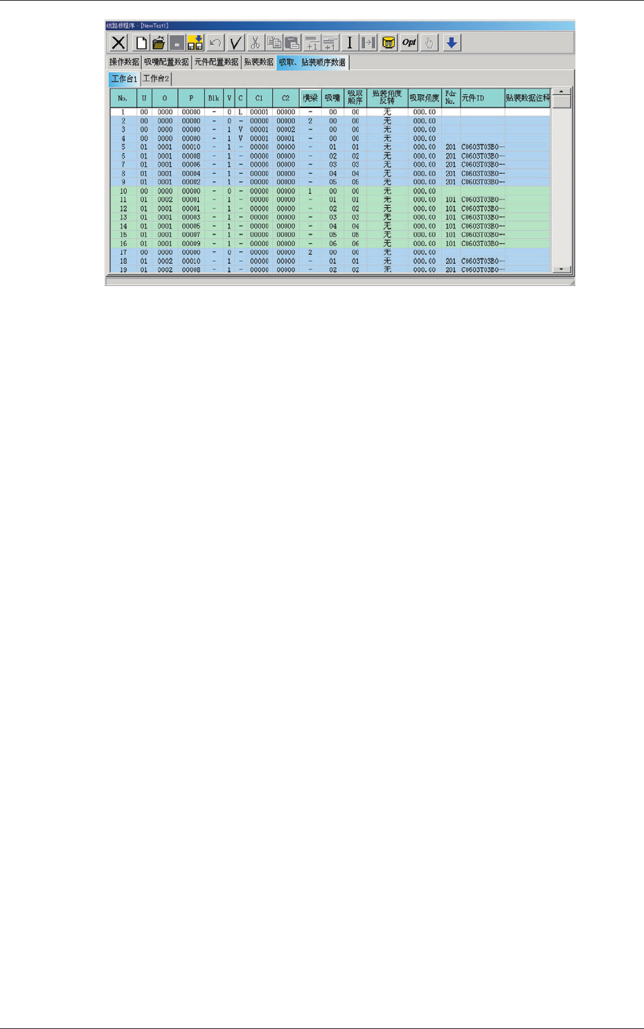 3 - 54 Tg 1315 -ID-PM 0603 - 001 2.2 “线路板程序”编辑界面 Fig.3C39-5 “吸取、贴装顺序数据”选项卡