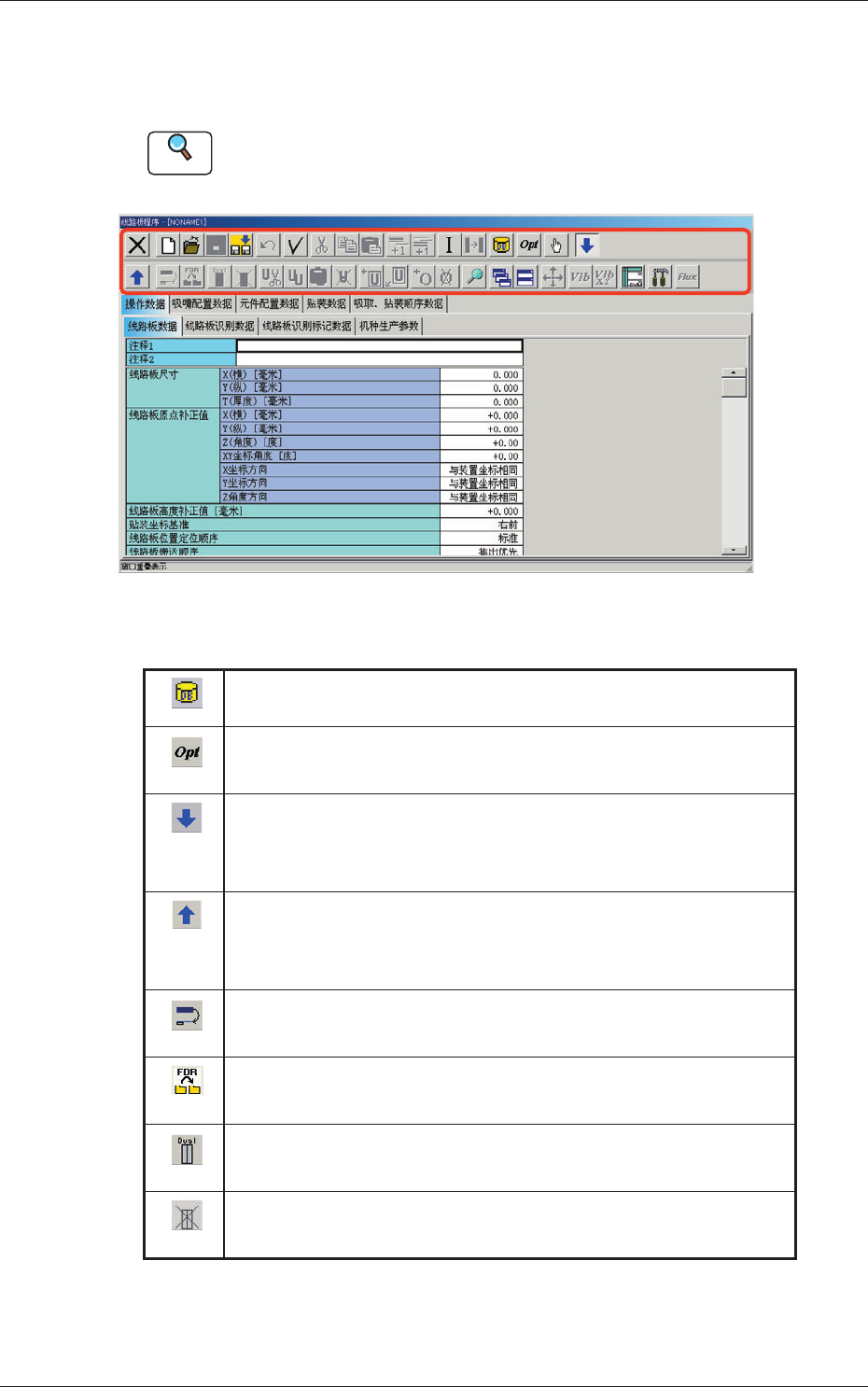 对只在“线路板程序”编辑界面中使用的图标进行说明。