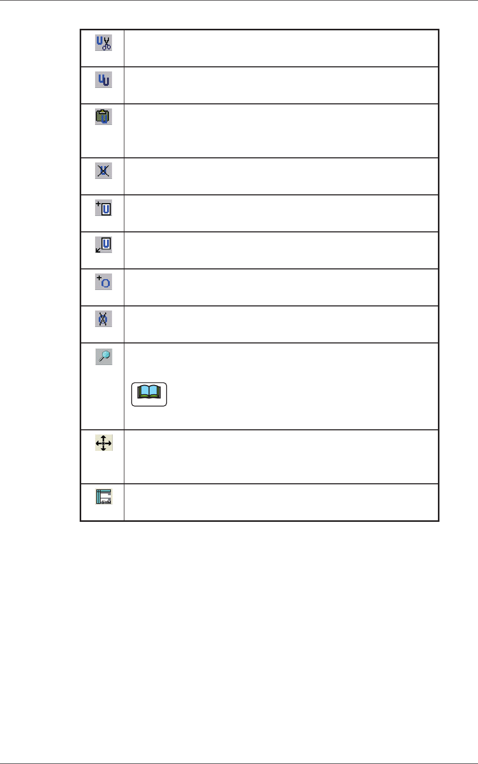 3 - 56 0612 - 002 2.3 图标的说明 Table 3C3-2 复制、删除选中的单元 剪切当前显示的 U 数据。 复制选中的单元 复制当前显示的 U 数据。 插入复制的单元 粘贴已“复制、删除选中的单元”或“复制选中的单元”的 U 数据。 删除选中的单元 删除当前显示的 U 数据。 在最后添加新单元 在 U 数据的最后添加新 U 数据。 在选中单元前插入新单元 在当前选中的 U 数据前插入新 U 数据。 在选中的单元添加…