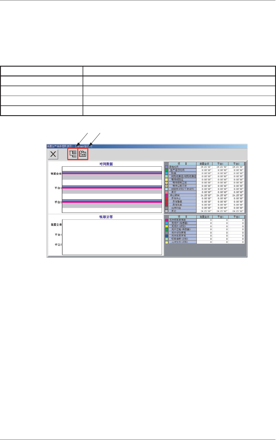 显示界面的名称 ( 装置生产情报 ) 以及显示中合计情报的区别 (“合
