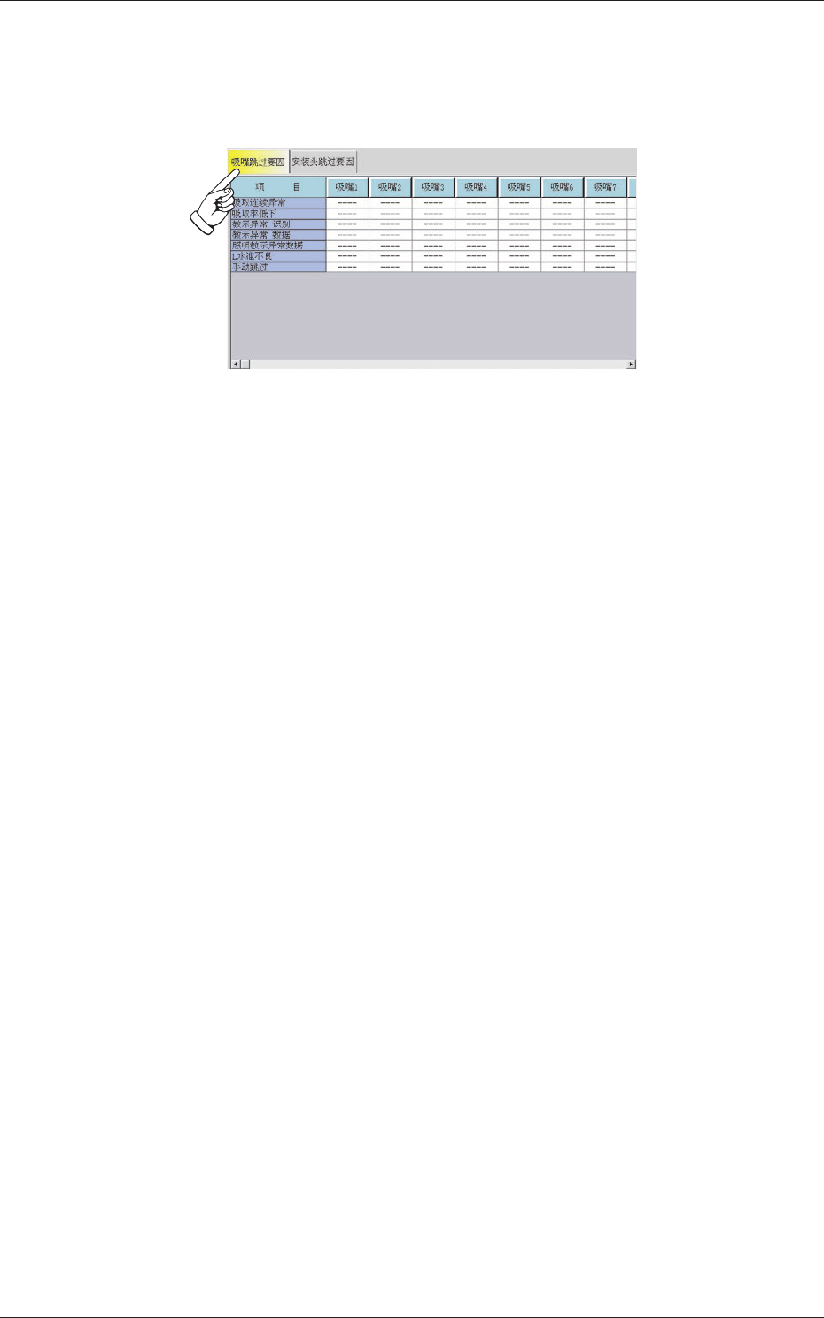 在“安装头及吸嘴的跳过情报”界面中,按[吸嘴跳过要因]Tab,显