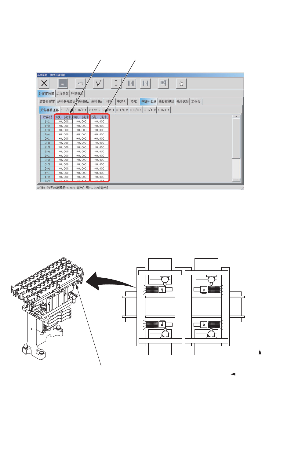 是吸嘴上面和吸嘴上下控制杆的设计值差距的补正值数据。
