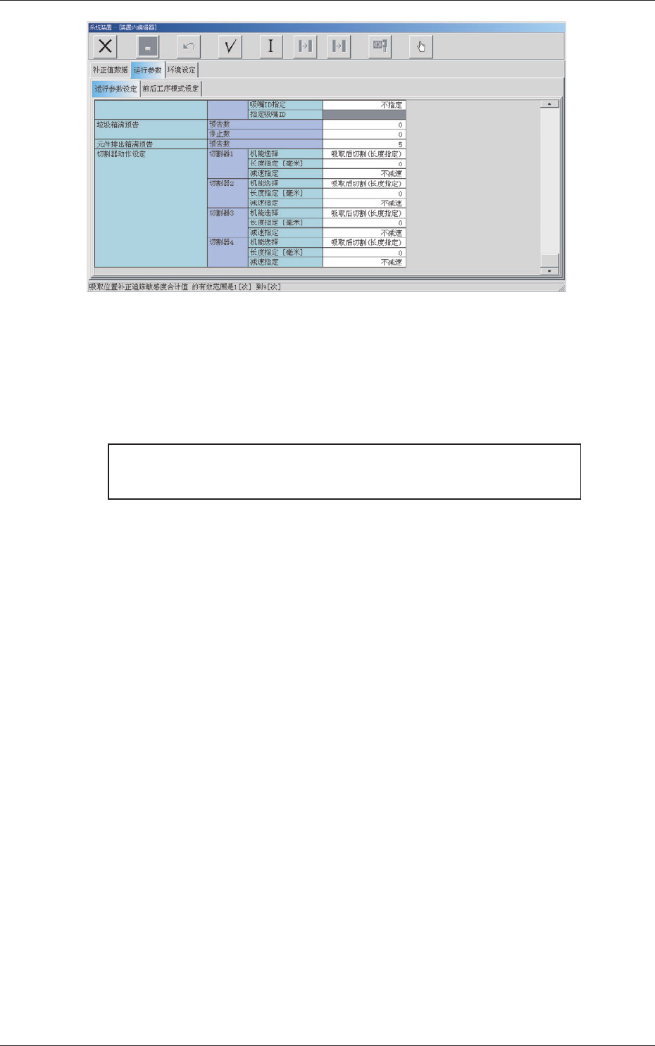 生产运行中为警告显示吸取率低下的吸嘴编号的设定数据。