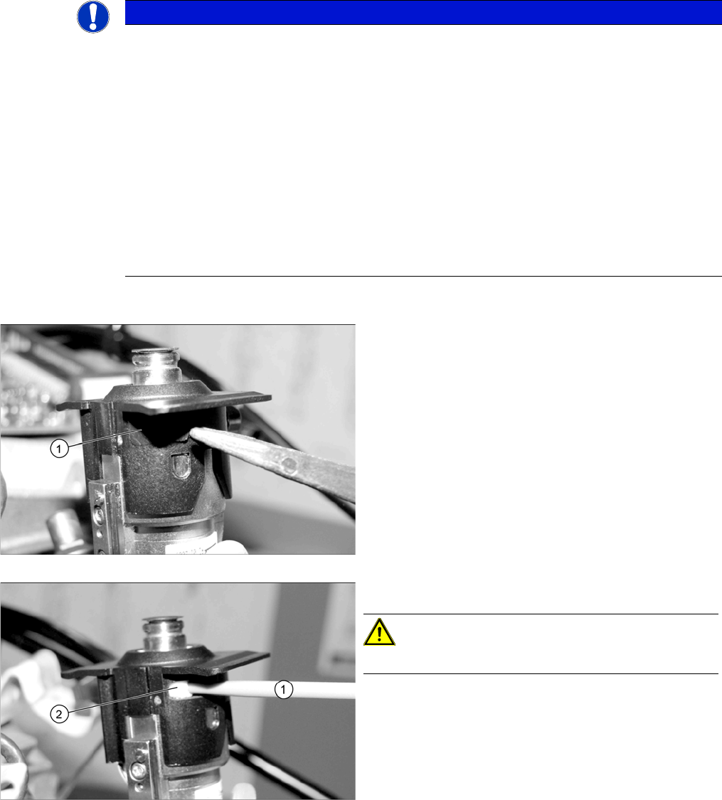 ► 如图所示将清洁棒插入维修孔 (2) 中,并使其停在挡