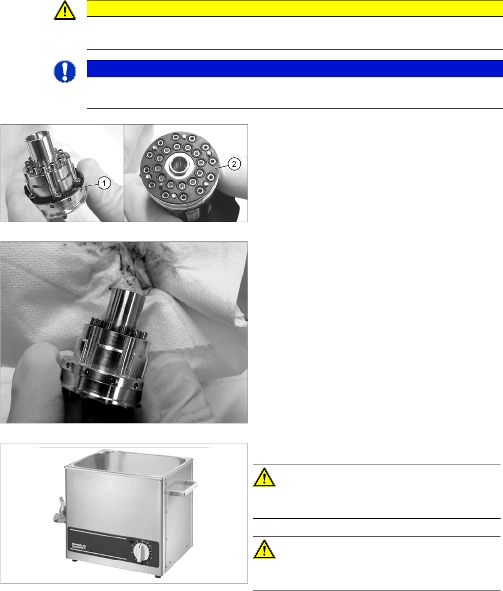 ► 拆除密封圈 (1) 和密封盘 (2),然后用一块无绒清洁布