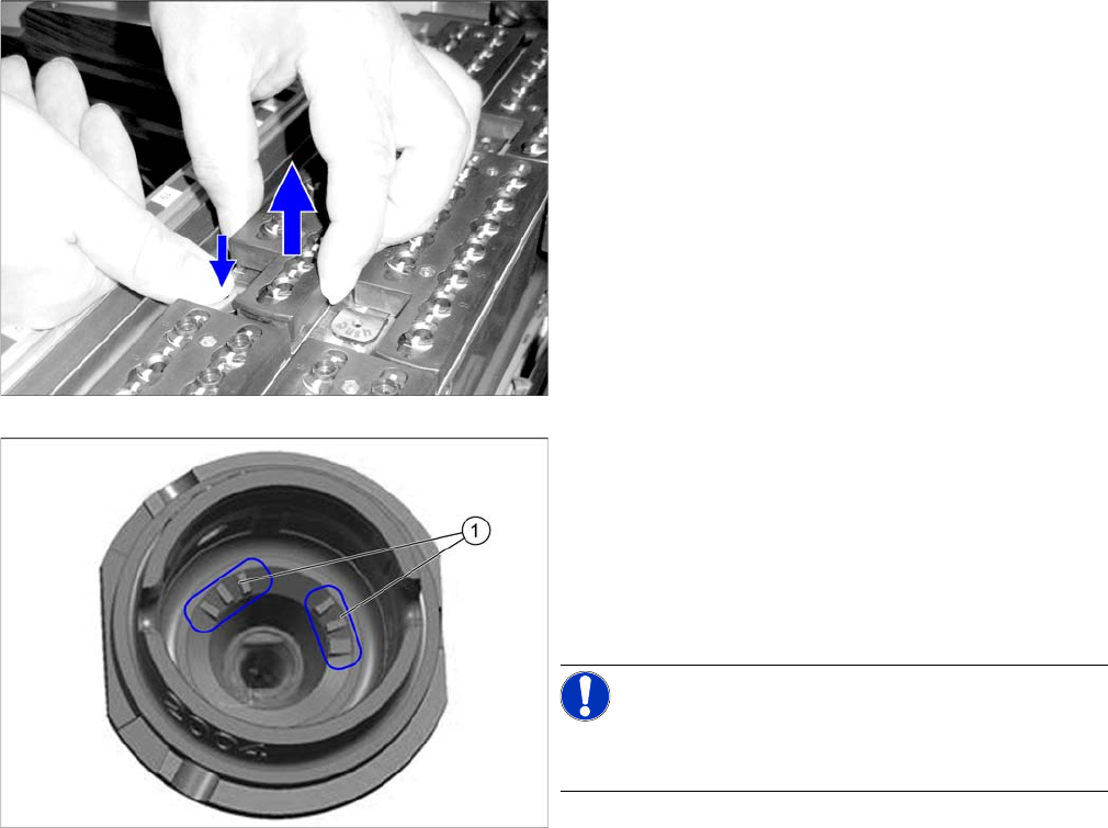 吸嘴的维护工作 执行维护工作 8.5.2 更换塑料吸嘴 86 预防性维护 SIPLACE CPP / C&P20 / Twin 8.5.2 8 . 5 . 2 更 换 塑 料 吸 嘴 更换塑料吸嘴 ► 移除吸嘴交换器内一个已装满的吸嘴盘。在处理 一个 未被装满 的吸嘴盘时,请注 意吸嘴交换器的定向,以 保证之后可以正确复位。 ► 检查吸嘴。 替换损坏的吸嘴。 ► 如果您在使用带有吸嘴 ID (1) 的吸嘴, 那么请用吸 尘器清洁…