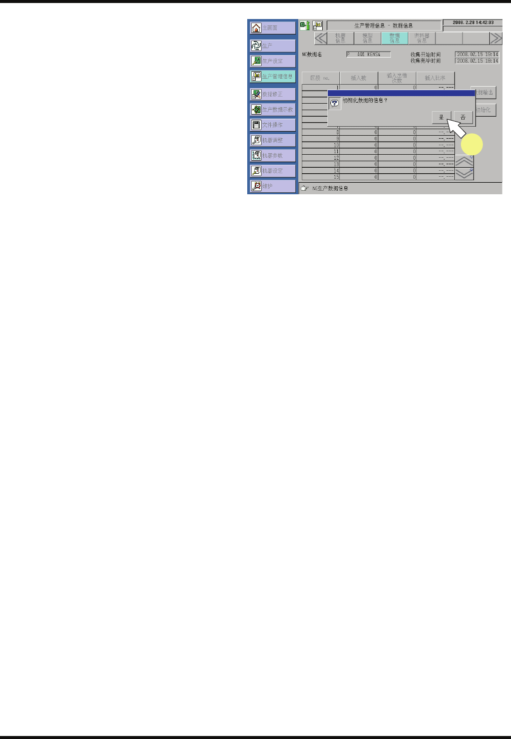 1. 按动主菜单的 [生产管理信息],再按子菜单的