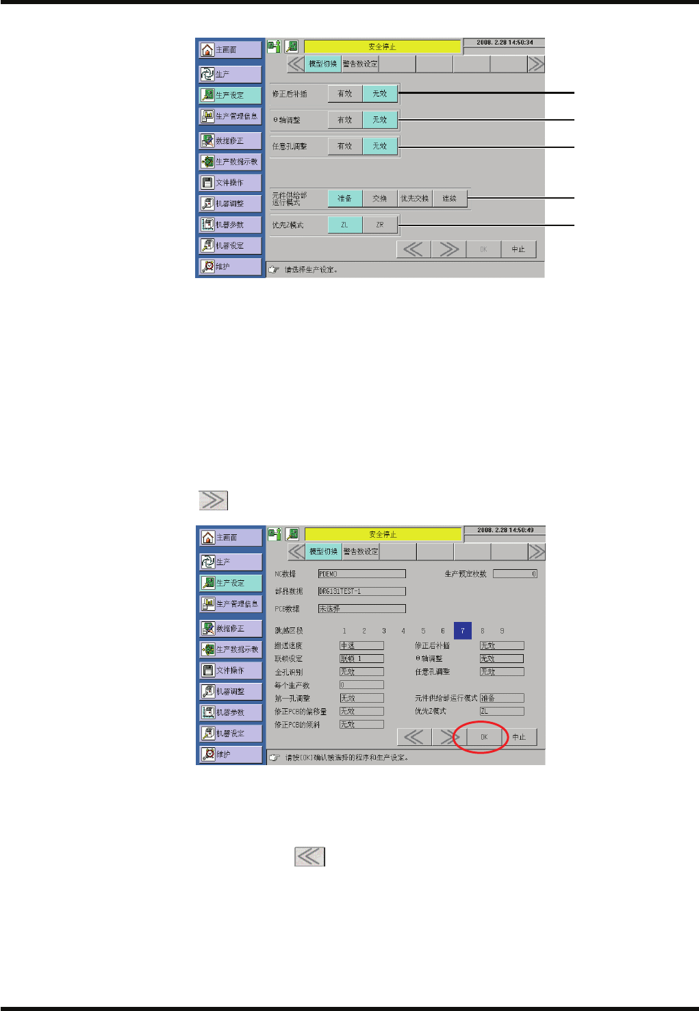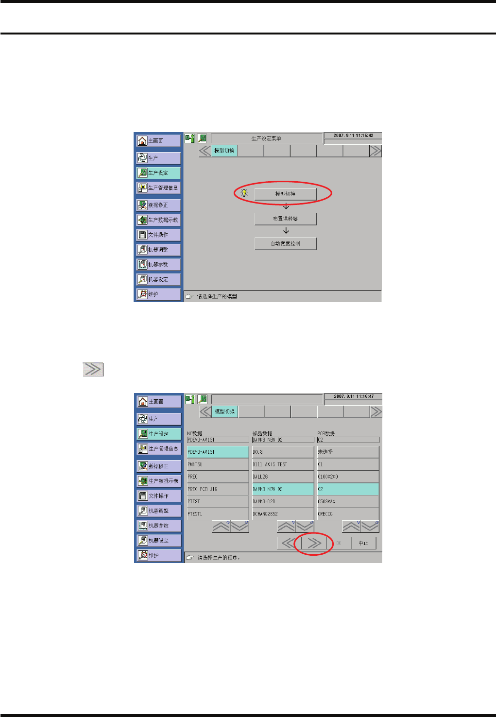 1. 按动主菜单的 [生产设定],进入 “模型切换菜单” 画面。
