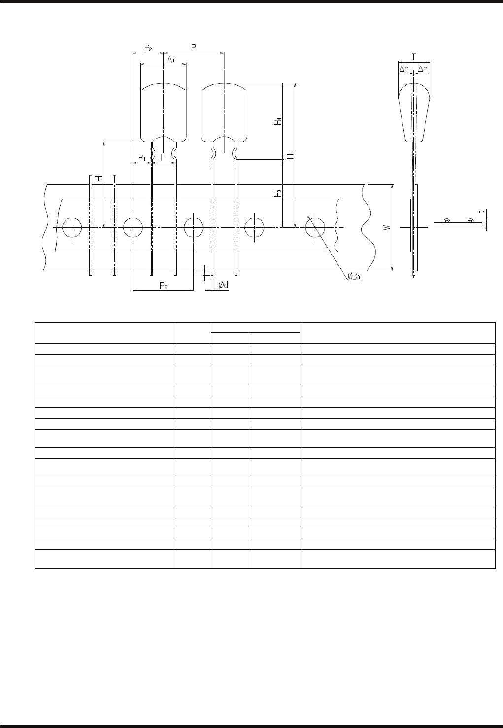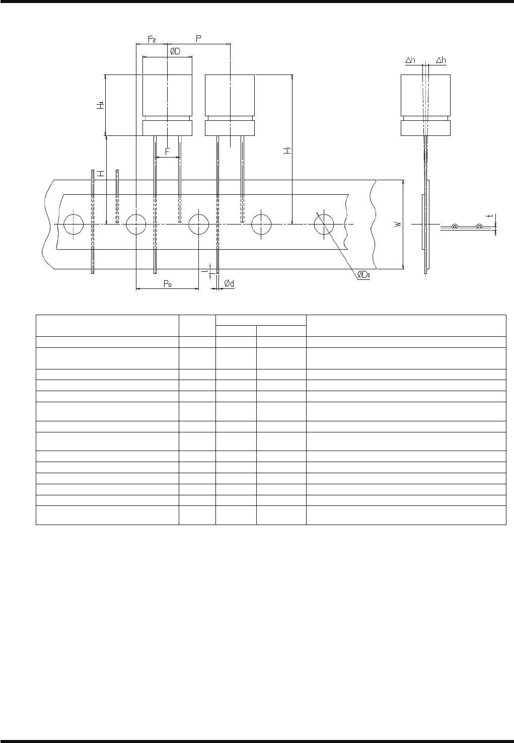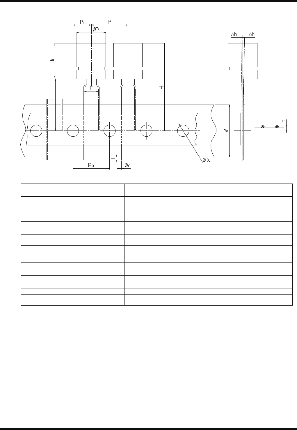 RL132 参考手册 2.5 适用元件 DA9RCC-12-160-B0 2.5-8 5. 电解电容器 (A) 尺寸 (mm) 内容 记号 数值 容许范围 备注 元件直径 Ø D 13.0 最大 引脚线直径 Ø d 0.6 ±0.05 软铜线是 Ø 0.6 mm 硬铜线和 CP 线是 Ø 0.5±0.05 mm 元件间距 P 12.7 ±1.0 孔间距 P 0 12.7 ±0.3 累积间距误差 = 1.0mm /20 间距 从孔中心到元…